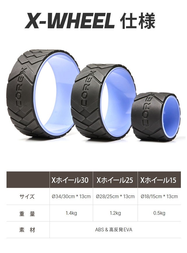 この度、SNSで広まるヨガ・ホイール3種類をフォームローラーの弱点を改善してアップグレードしたXホイール新た発売しました。