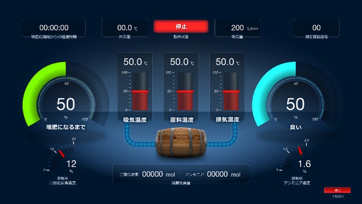 ②目には見えない微生物によって行われる「堆肥化」を可視化するモニタリングシステムが設置可能。