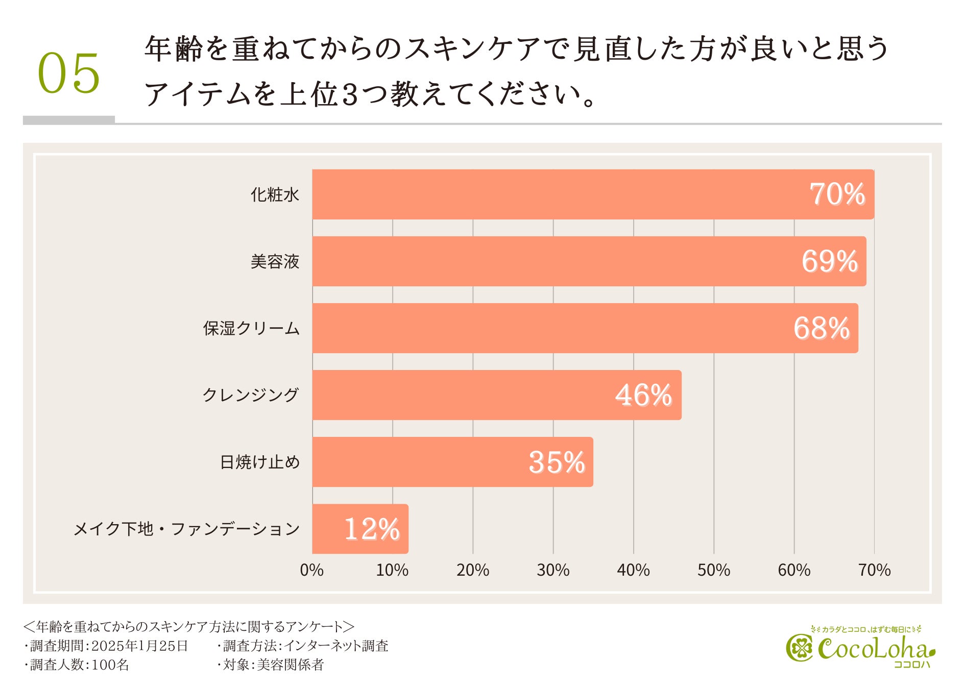 年齢を重ねてからのスキンケアアイテムについて伺いましたが、さらに掘り下げて調査を行ってみましょう。
