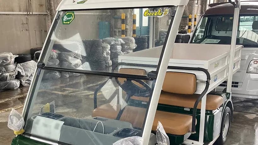 Beecle(ビークル)は軽トラックに替わる新たな電動サービスカートです。使われなくなった中古の電動ゴルフカートをリユースし、船員の健康と自然環境の保護に貢献します。