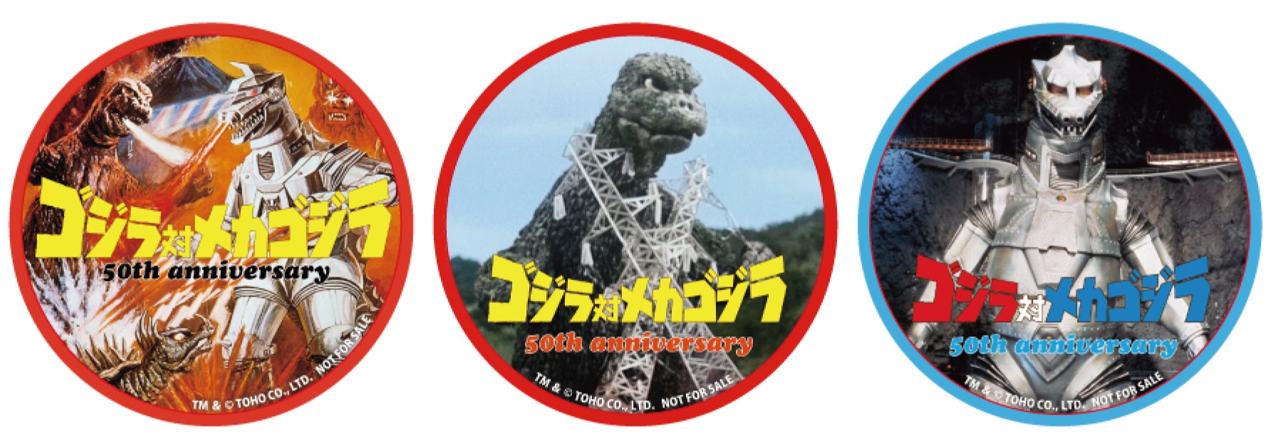 ■プラス1で国際通りスタンプラリーのスタンプ5個とプラス1のスタンプいずれか1つを集めると貰える『ゴジラ対メカゴジラ』50周年記念缶バッジ