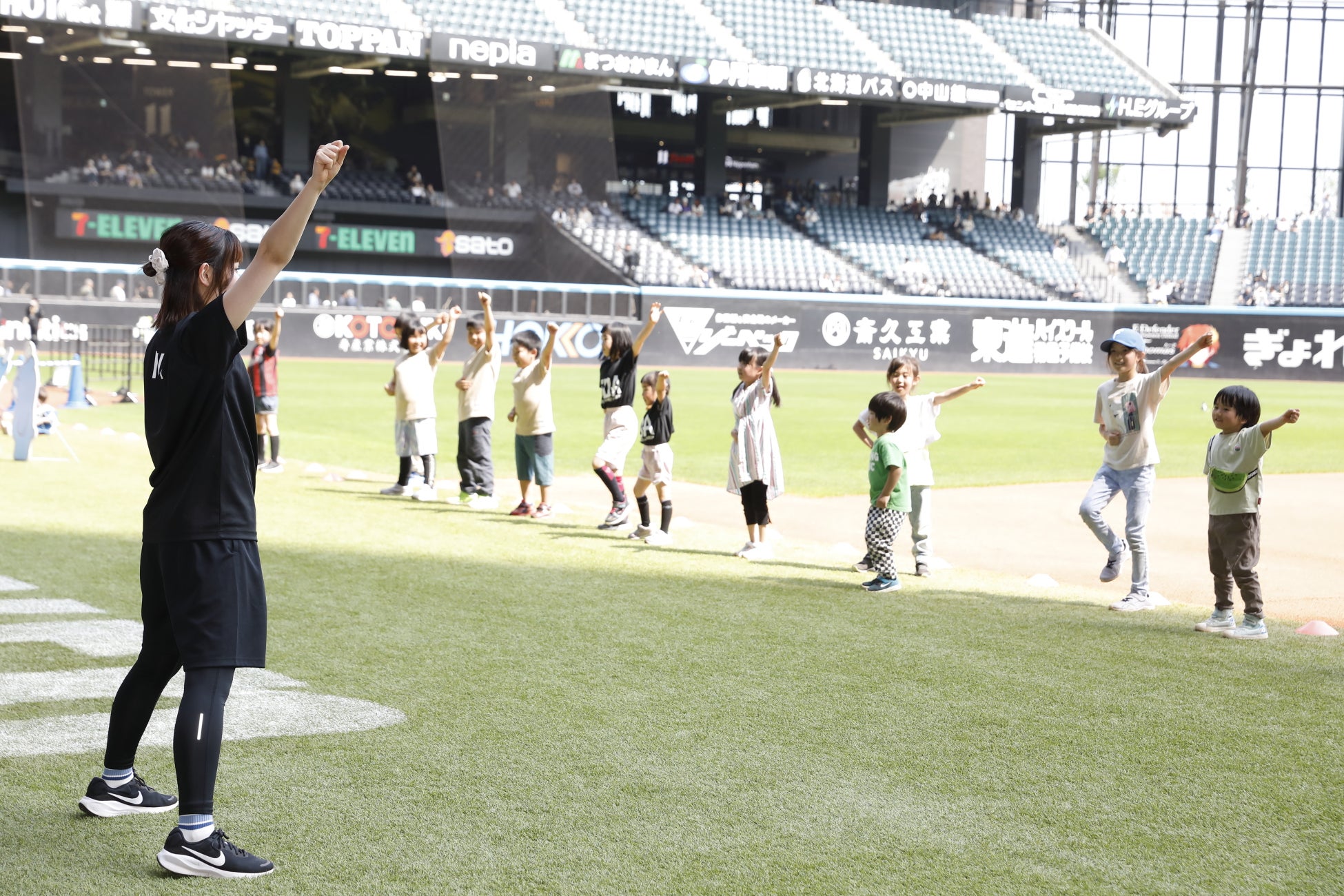 な体の使い方を学べます。運動会シーズン前に子どもも保護者も一緒に楽しめるコンテンツです。おやこで揃ってレッスンに参加できることで、エスコンフィールドでの家族の思い出を作りましょう!