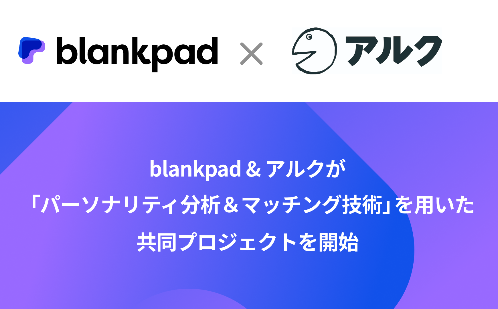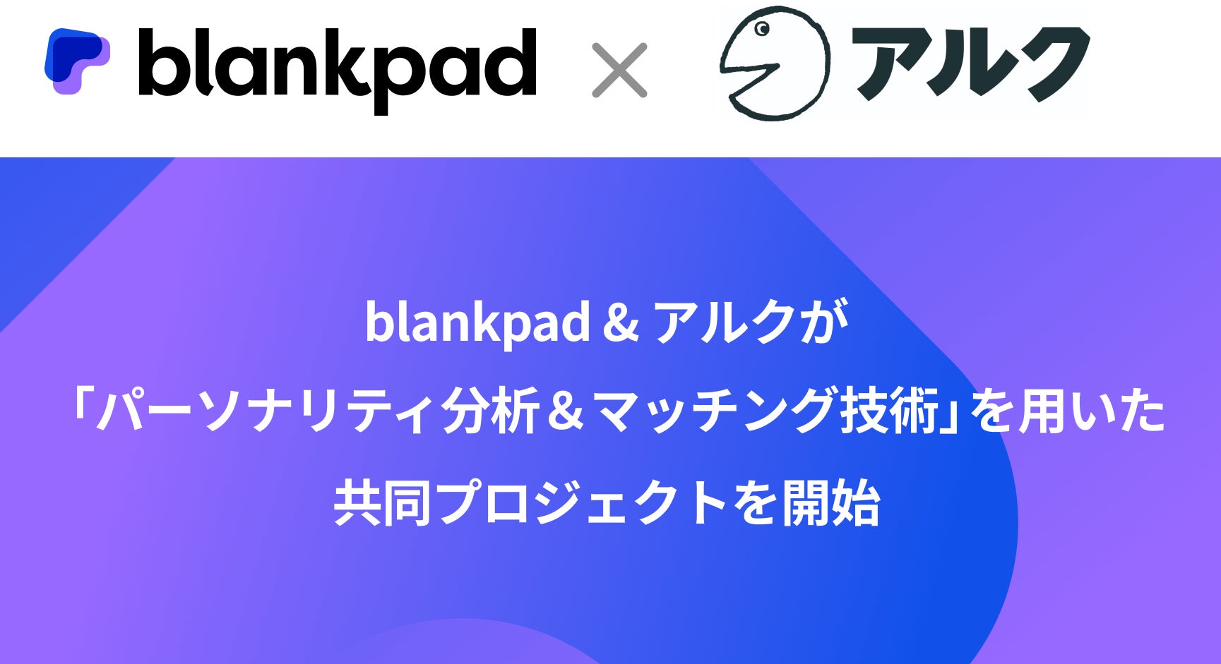 blankpad&アルクが「パーソナリティ分析&マッチング技術」を用いた共同プロジェクトを開始