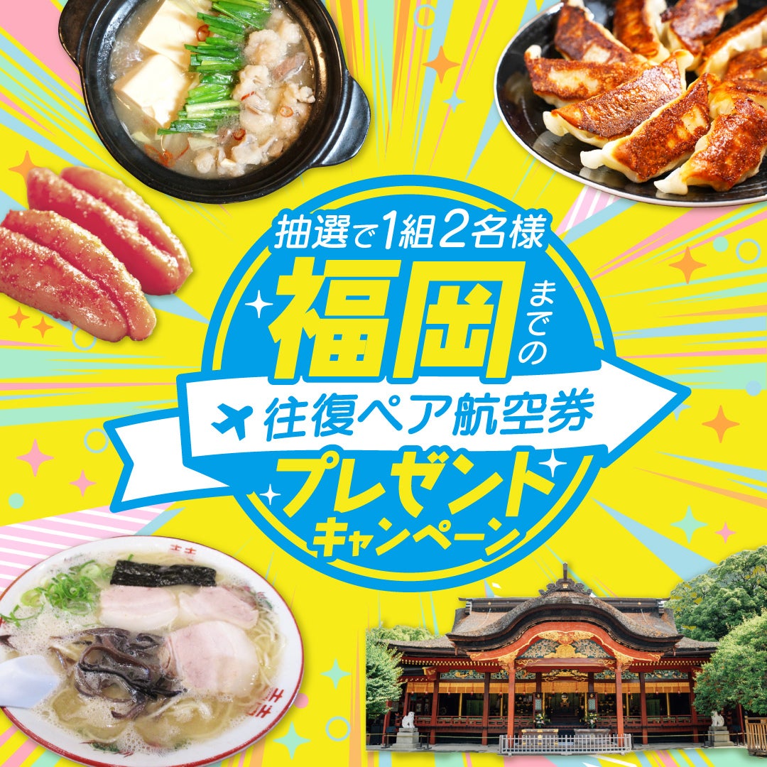 本キャンペーンでは、ネオ柚子胡椒の生まれ故郷である福岡を堪能いただくため、福岡空港までの往復ペア航空券を抽選で1組2名様にプレゼントいたします。