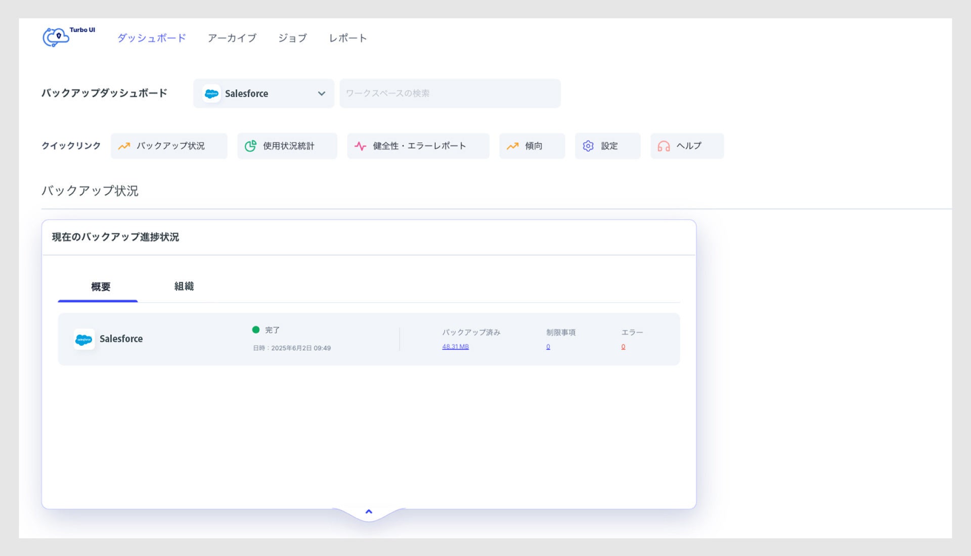Salesforceの仕様に対応し、APIを最適化しながら企業規模問わずバックアップ負担を軽減するSalesforce向けデータ保護ソリューション。