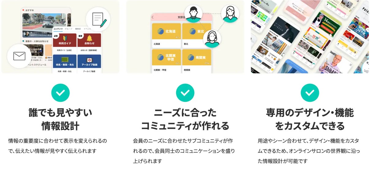 オンラインビジネスに必要な機能が揃っているので、会員制オンラインビジネス運営のためのプラットフォームです。オンラインで会員制ビジネスを成功させたい方々にご利用いただけます。オンラインサロン・スクール・ファンクラブなど幅広く理想が実現するアプリです。