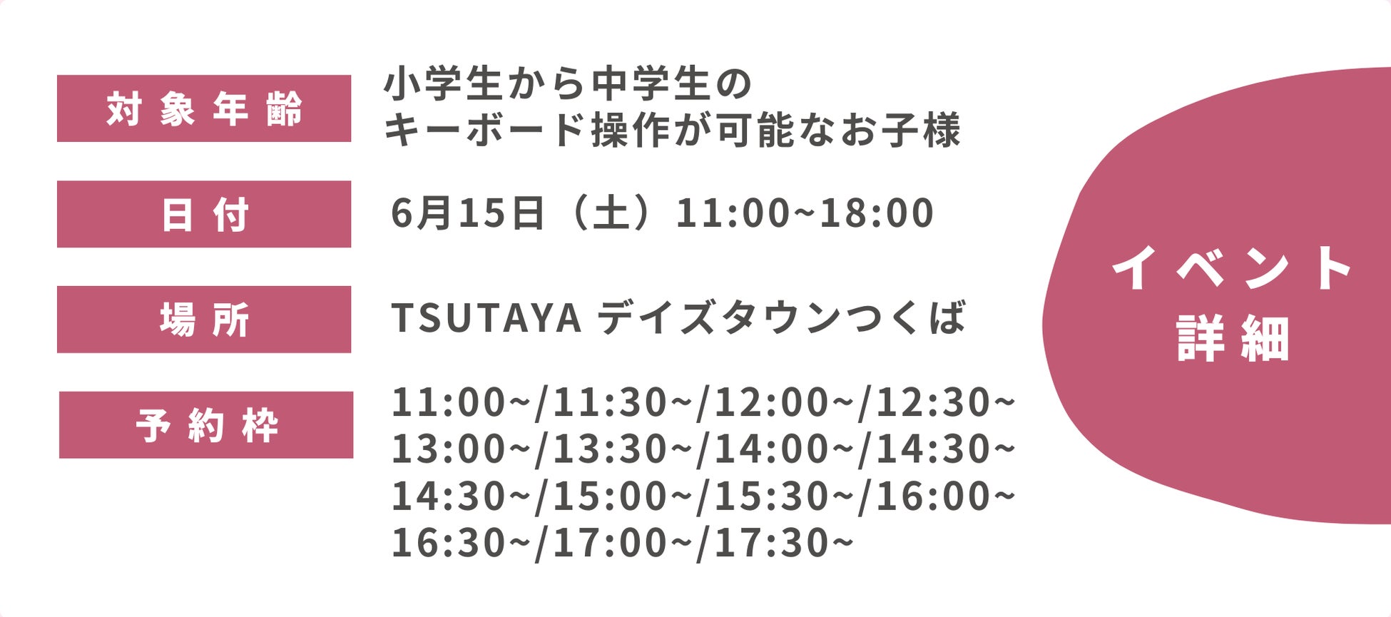 本イベントは、小学生から中学生のキーボード操作が可能なお子様でしたら、どなたでも無料でご参加いただけます。