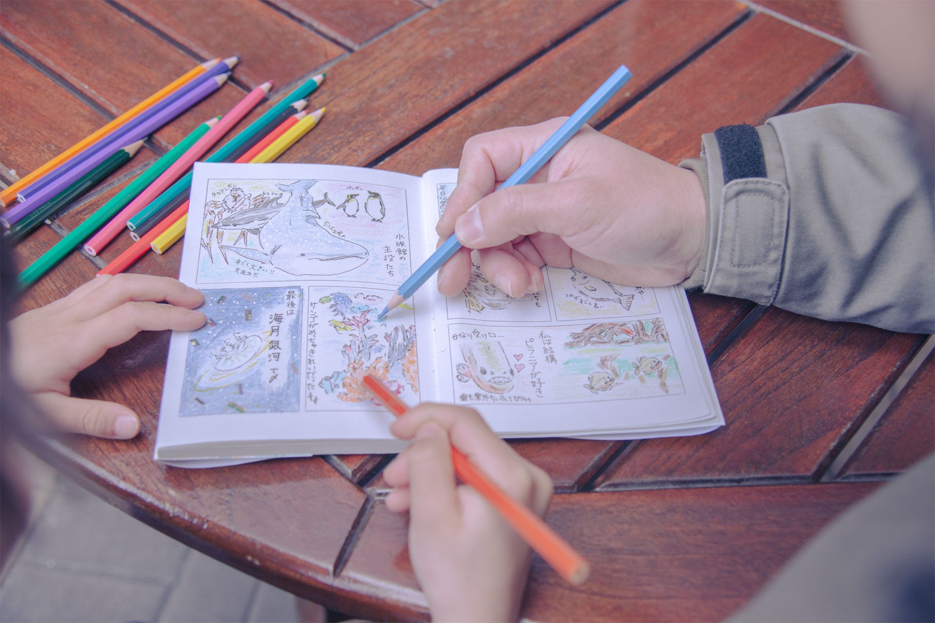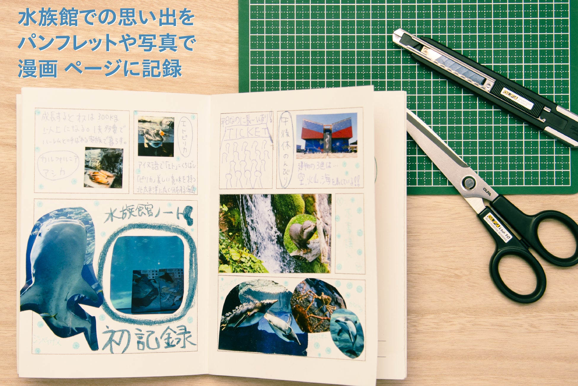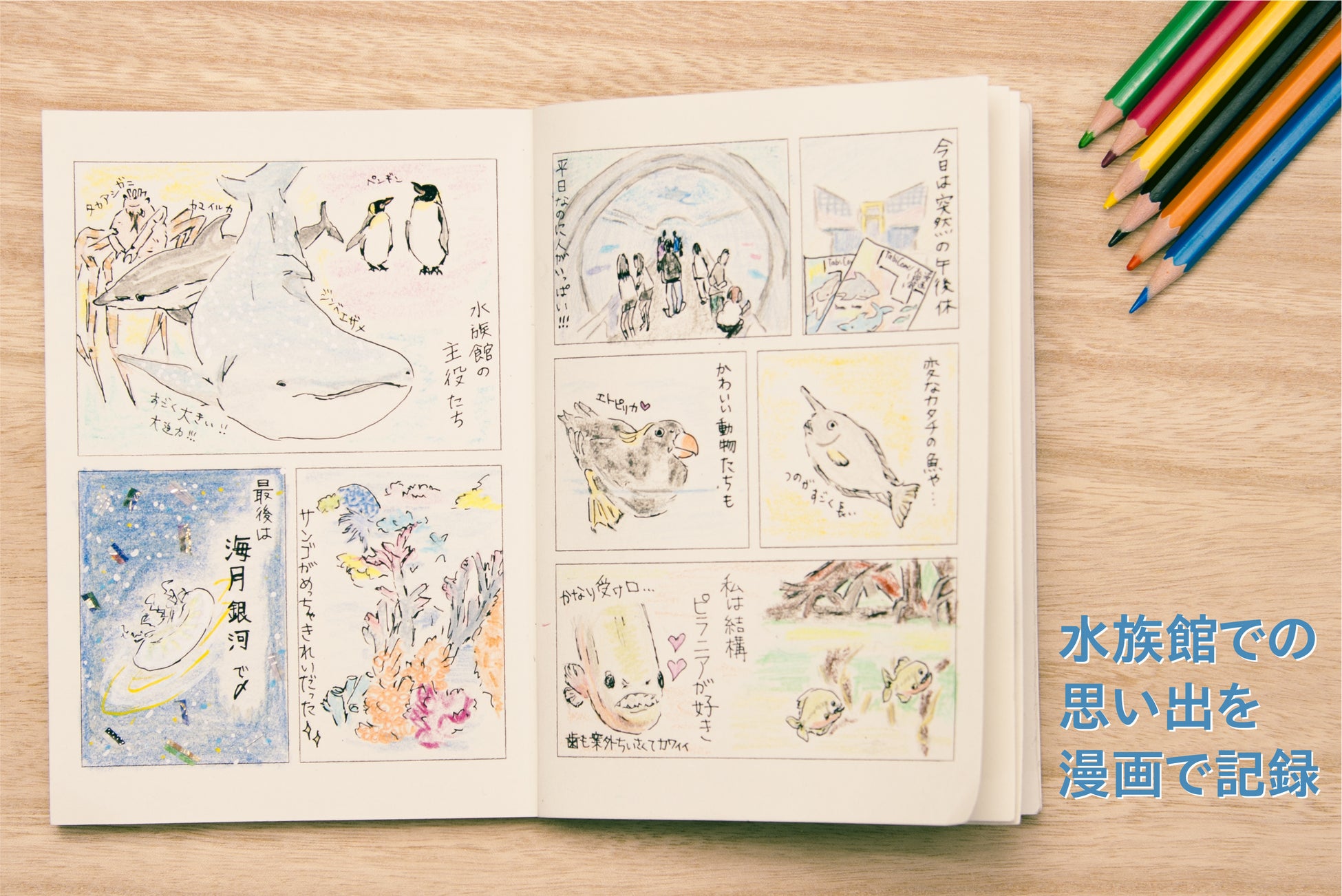 単なるノートではなく「ストーリーを記録する楽しさ」をテーマにしており、水族館の思い出がノートいっぱいの漫画として残る特別な1冊です。