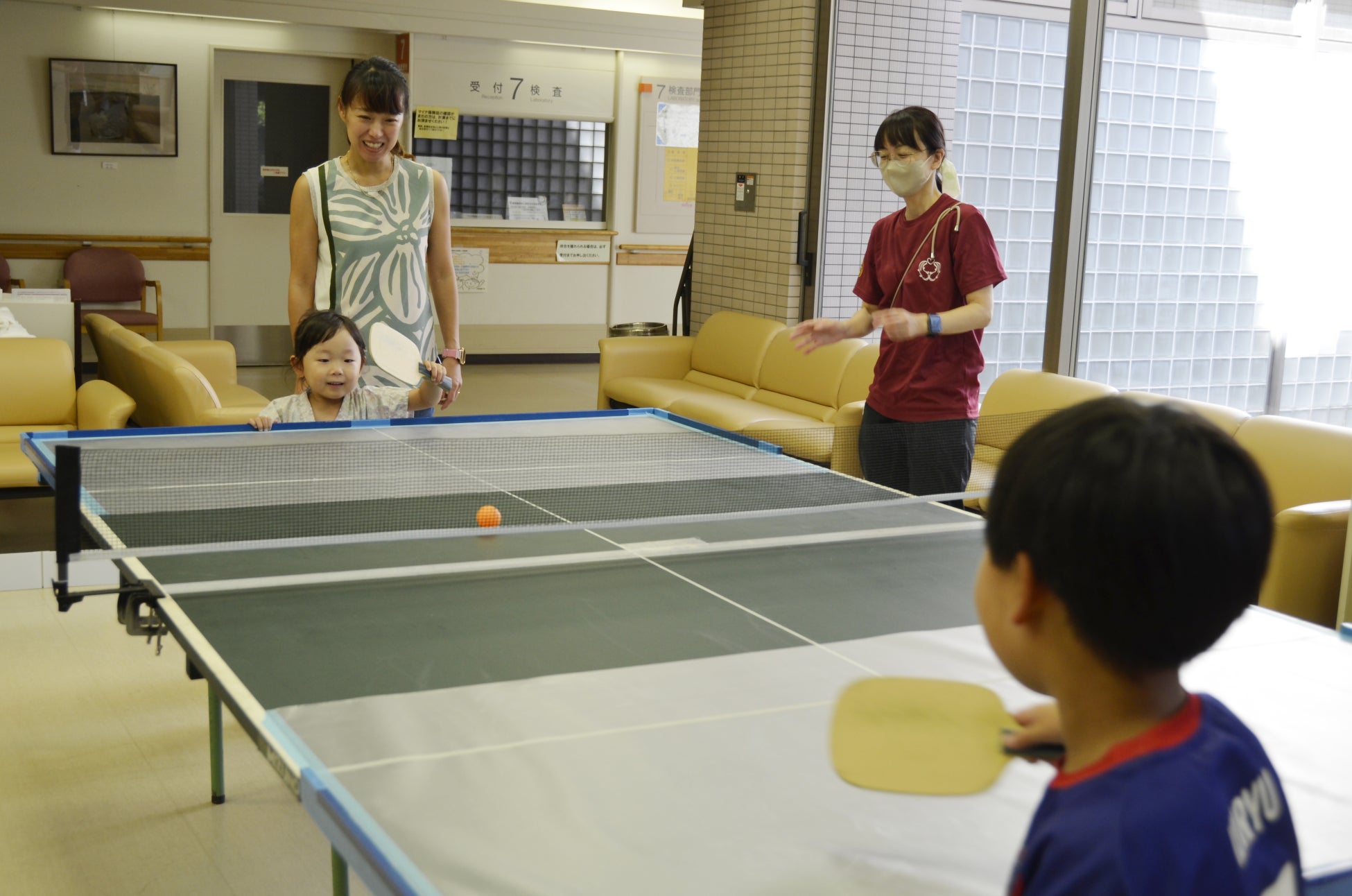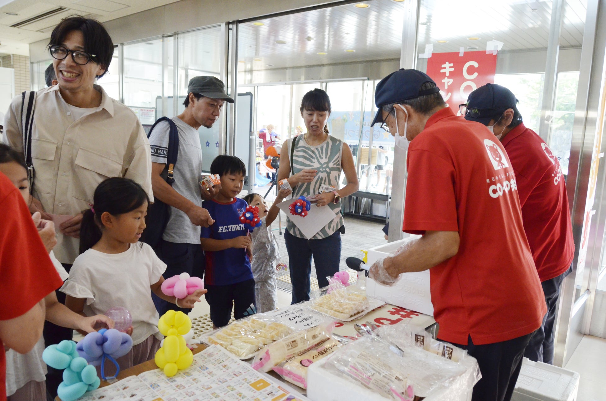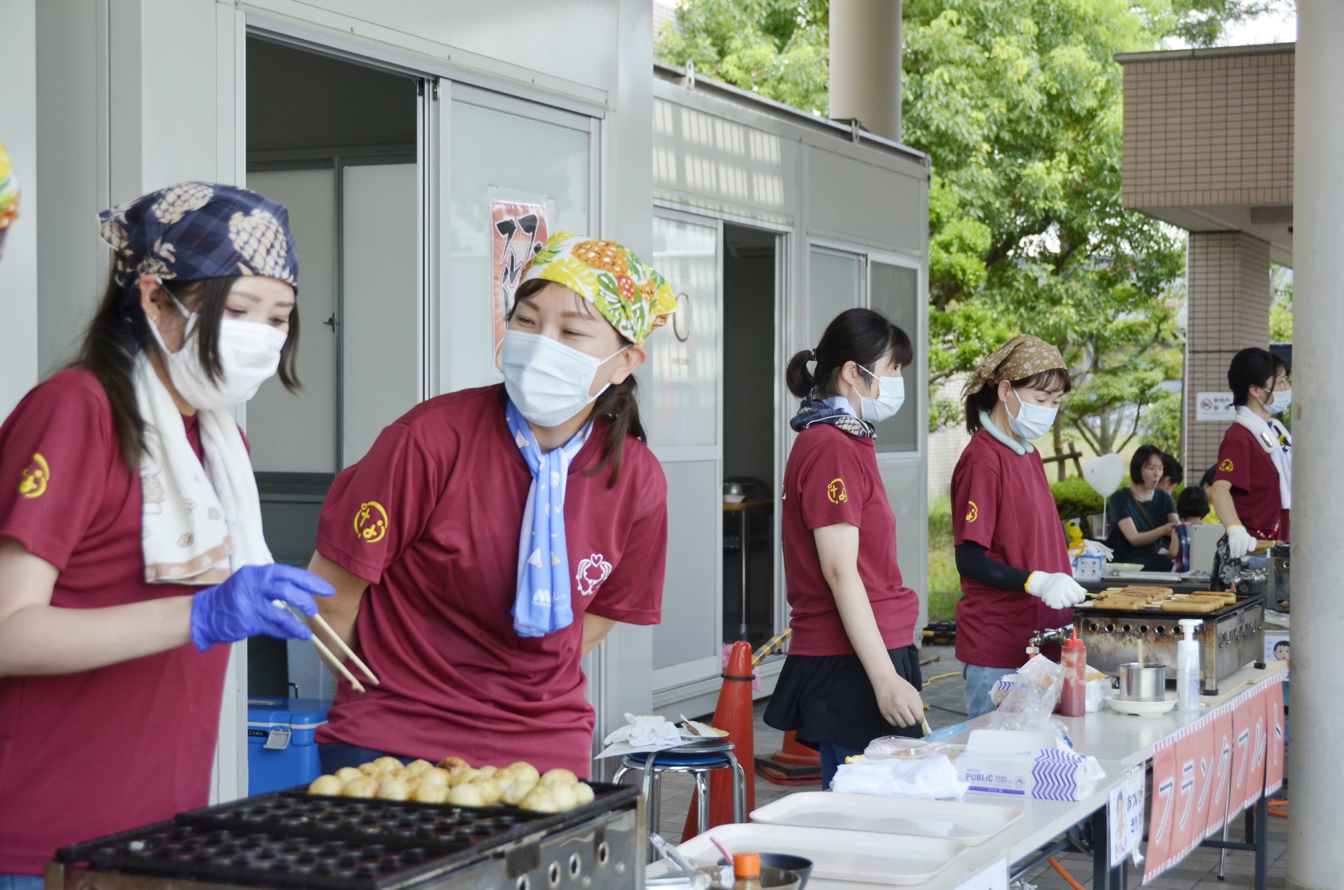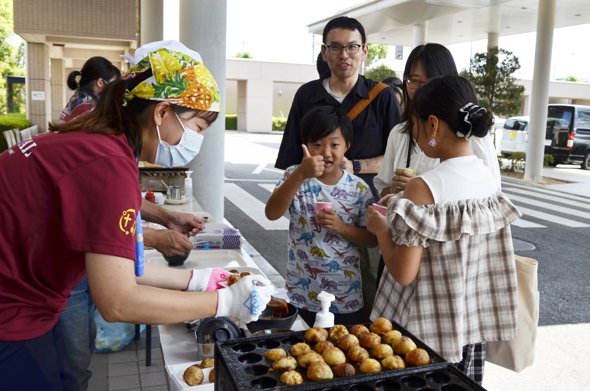 名張市立病院で、8月30日、小麦や卵などを使わないたこ焼きなど、食物アレルギー対応の夏祭りを開催。医療従事者が見守る中、48家族が安心して楽しみました。