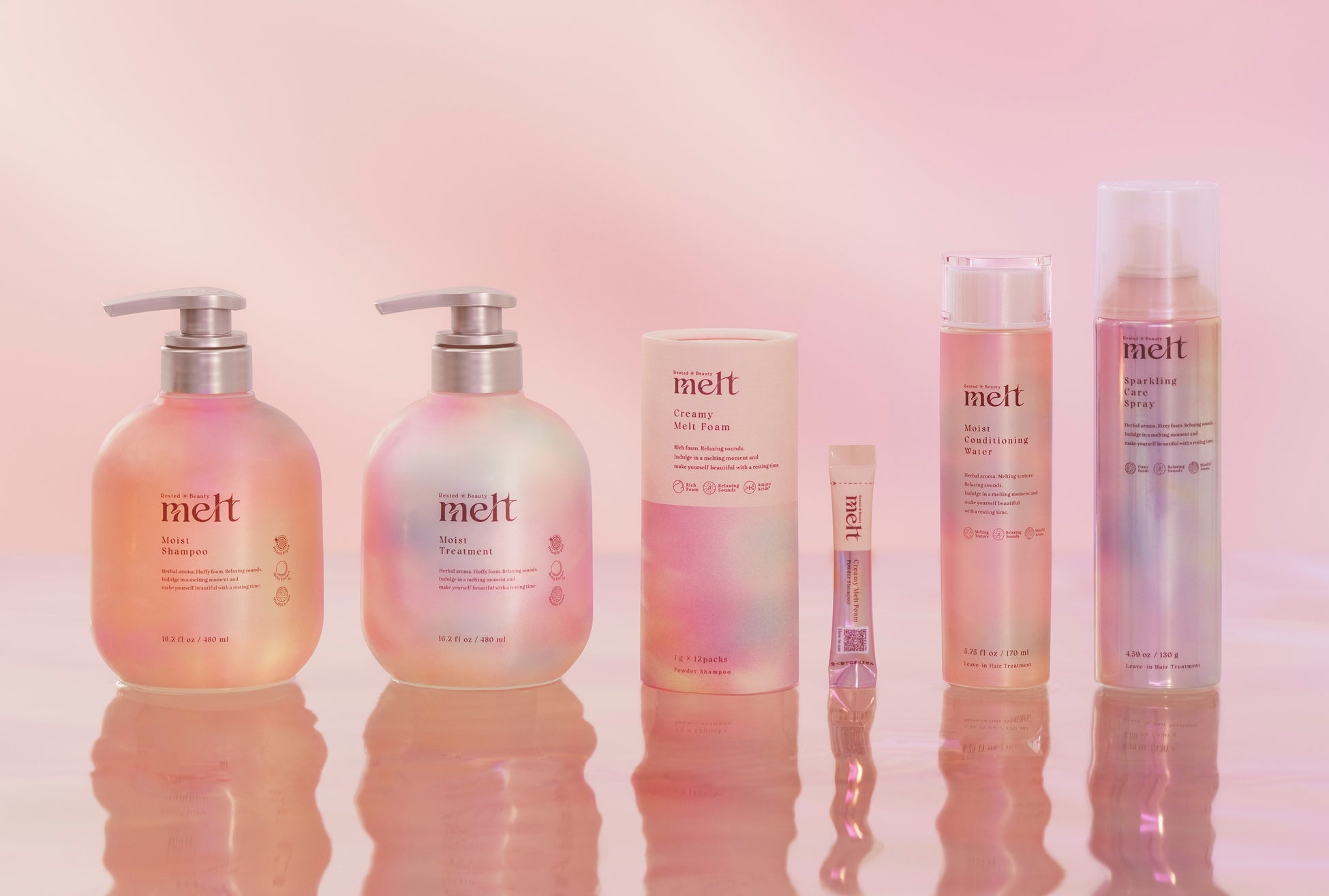 販売商品:メルト モイストシャンプー(お試し・本体・つめかえ)、メルト モイストトリートメント(お試し・本体、つめかえ)、メルト モイストシャンプー&トリートメントセット(クリーミーメルトフォーム2包付)、メルト クリーミーメルトフォーム(1包・6包・12包)、メルト モイストコンディショニングウォーター、先行発売商品:メルト スパークリングケアスプレー