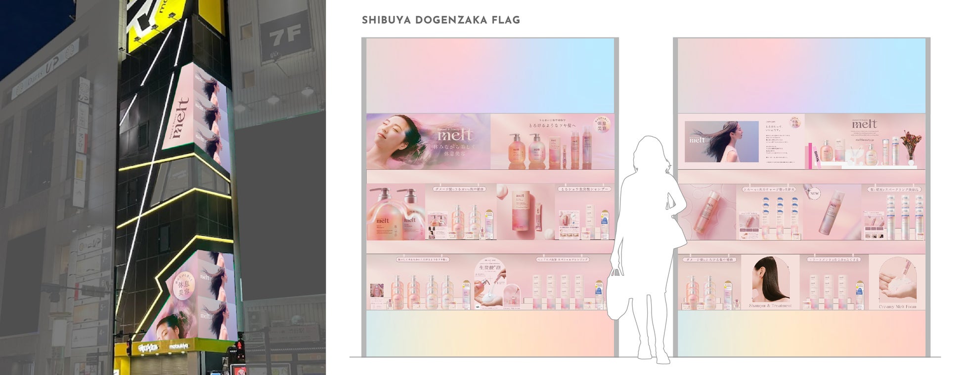 今回のポップアップでは、「SHIBUYA DOGENZAKA FLAG」の外観をジャック。「melt」の世界観を感じる映像を放映します。さらに、「SHIBUYA DOGENZAKA FLAG」と「池袋Part2店」の店内では、ブランドの世界観や香り、商品に触れながら、お買い物できるポップアップを展開します。6月8日(土)に発売する「メルト スパークリングケアスプレー」も全国に先駆けて、店頭でいち早くお試しいただけます。ぜひ温冷感発想のはじける美容泡をご体験ください。