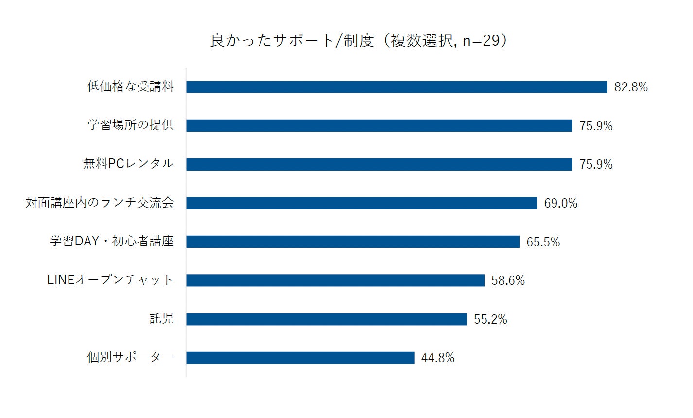 地方の女性がPCスキルを身につけるには、2つのハードルがあります。1つ目は研修を受けるハードル、2つ目は研修を継続するハードルです。今春から夏にかけて気仙沼市で実施された3ヶ月の地域女性向けPCスキル研修「デジタルカレッジUP」(以後、デジカレという)実施報告書のデータは、それらを浮き彫りにしました。デジカレで提供したサポートのうち、良かったと受講生からの回答が多かったものは、「金銭的負担が少なく参加しやすい受講料」、「Wi-Fi環境のある学習場所」、「パソコンの無料貸出し」です。これらは、昨年、気仙沼市の18歳から49歳の女性7082人を対象とした全票調査「気仙沼市で暮らす⼥性の仕事・⽣活・デジタルスキルに関する調査」(2023年, n=1445)(以後、気仙沼デジタル調査という)が示すPCスキル研修を受ける上でのハードルと合致しています。