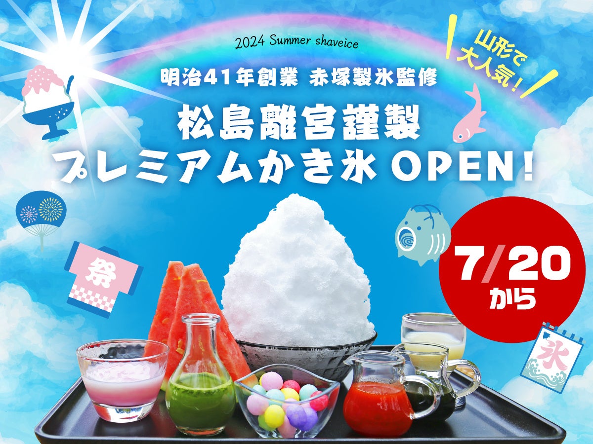 2024年7月20日(土)、日本三景 松島にある宮城県松島離宮で赤塚製氷監修「松島離宮プレミアムかき氷」を夏休み限定でオープンいたします。