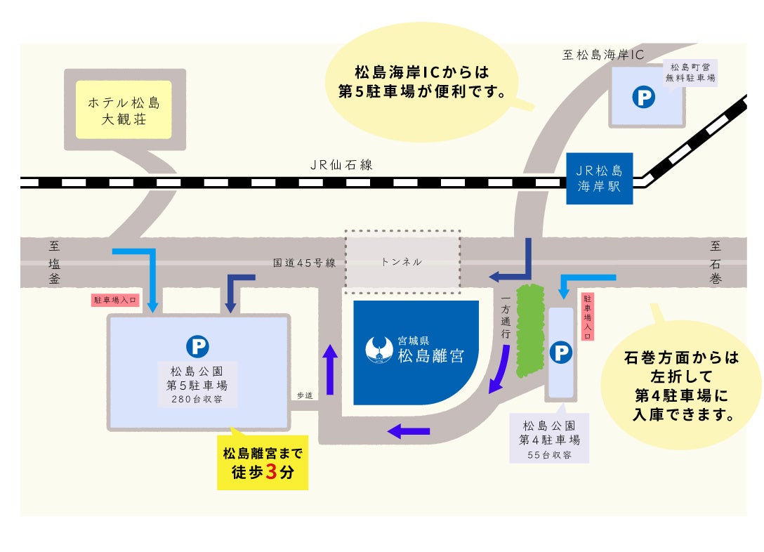 JR仙石線 松島海岸駅を降りて、右手徒歩1分