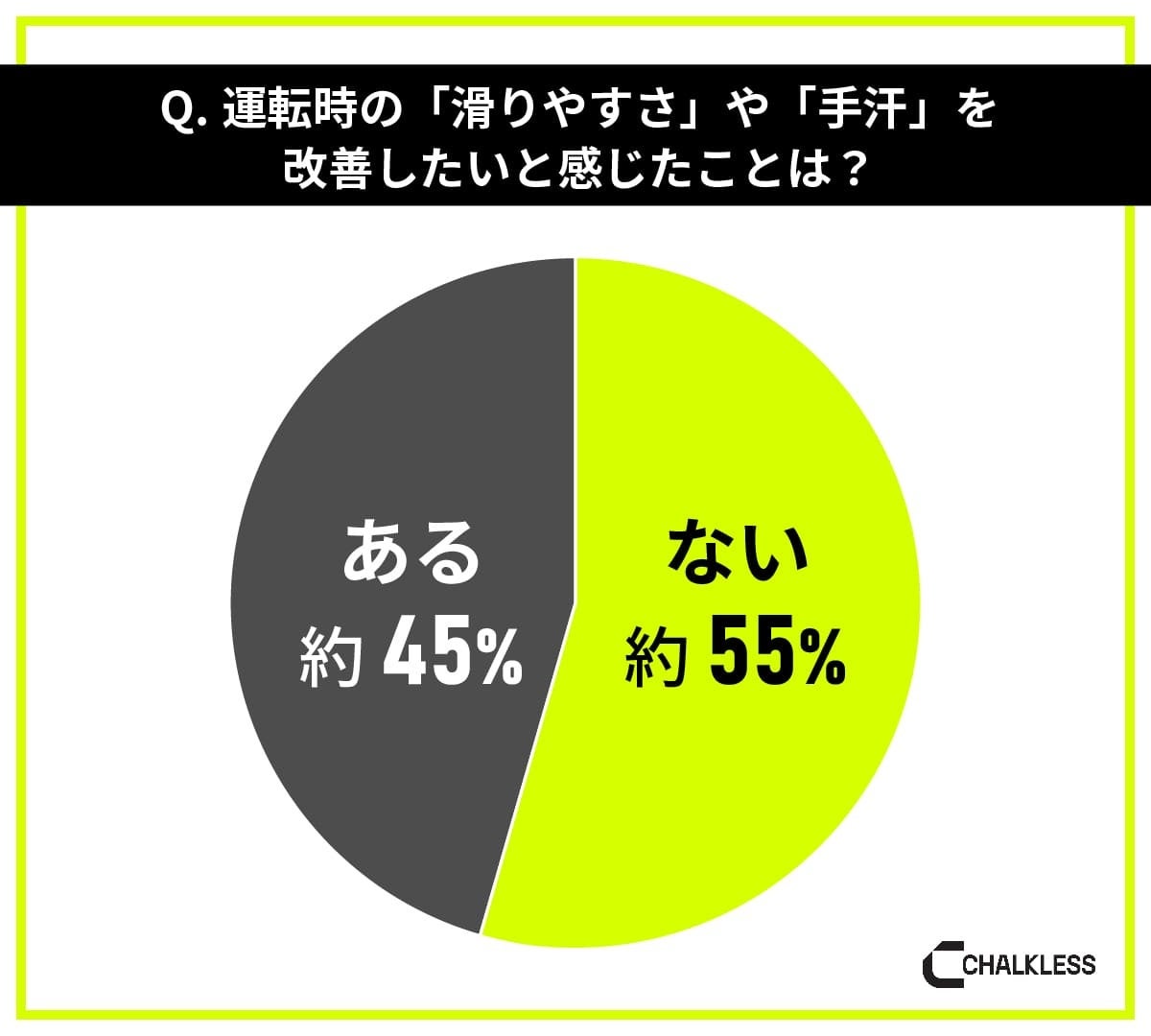 続いて、運転時の「滑りやすさ」や「手汗」を改善したいと感じたことがあるかどうかを聞いてみました。