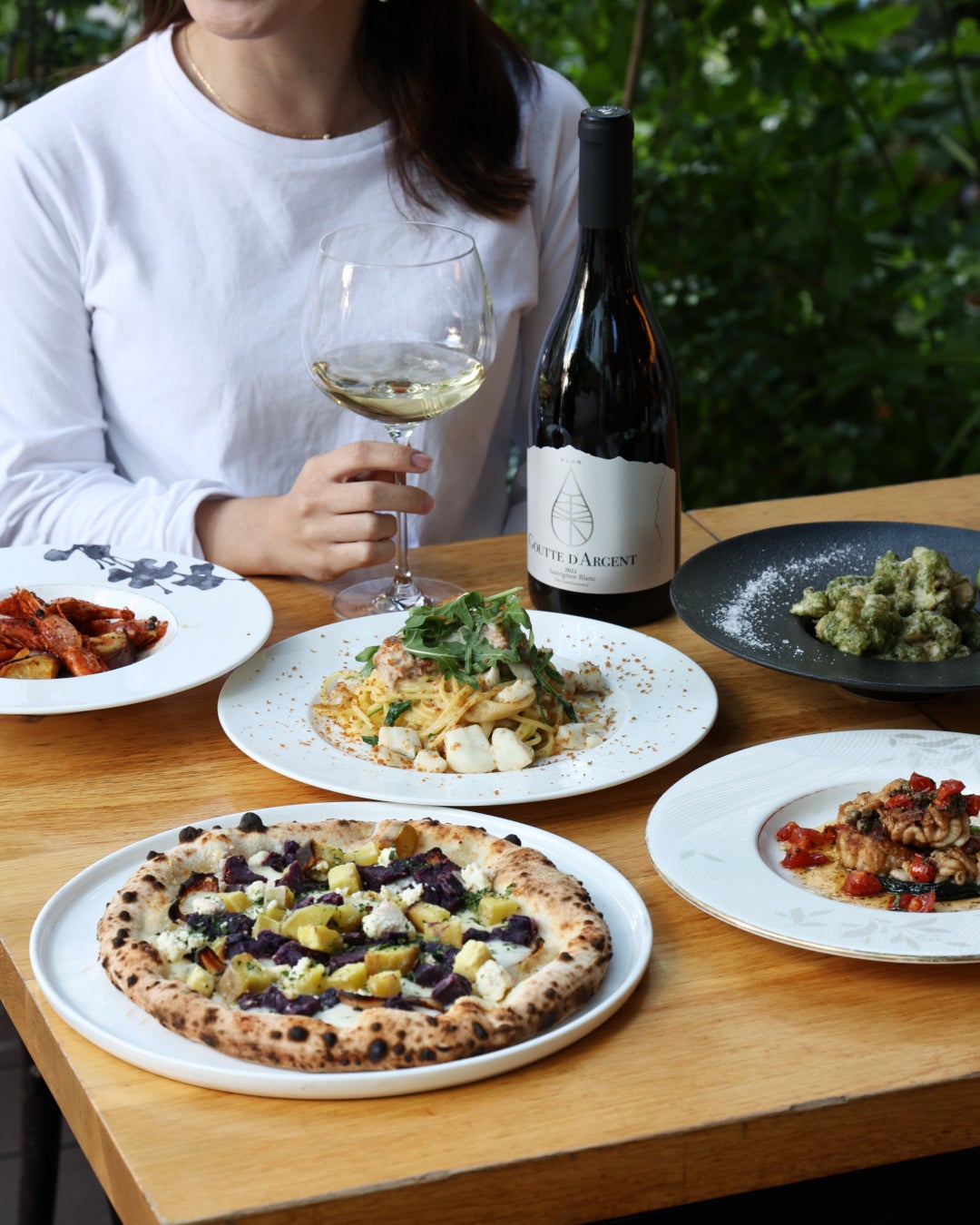 イタリア料理を基本としながら、料理長自らがその日仕入れた新鮮な魚介・旬の野菜で本日のメニューを考案しています。 ピッツァは、店内中央にあるナポリ最古の「ジャンニ・アクント社製」薪窯を使った本格ナポリ・ピッツァです。 パスタ・肉、魚料理も本場を意識した日替わりメニューでご用意。ランチでもディナーでも、デートでも女子会でも様々なシーンでご利用いただけます。