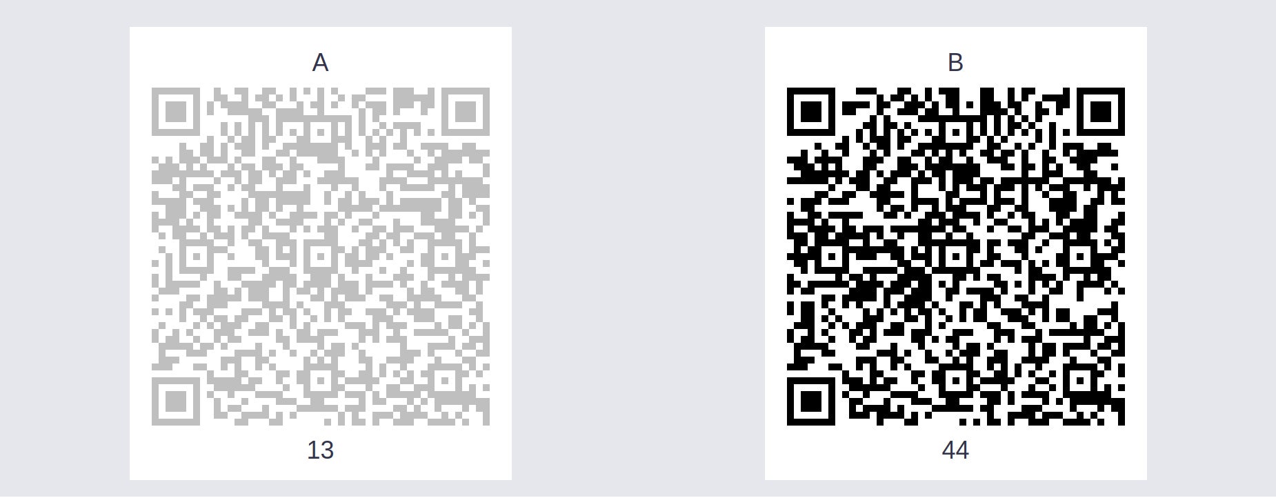 QRコードの濃さはそれぞれのQRコードの失効期限までの時間の長さを表現しています。イベント参加者はなるべく色が濃い方のQRコードを読み取ることで、余裕を持って受付処理を行うことができます。