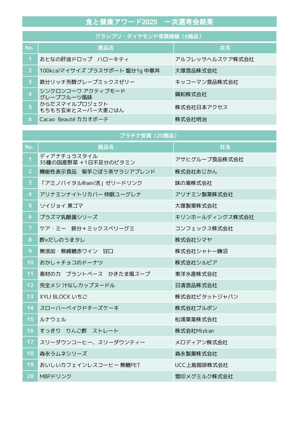 ■選 考 者 :食と健康アワード2025一次選考員(実行委員、業界卸売企業で構成)