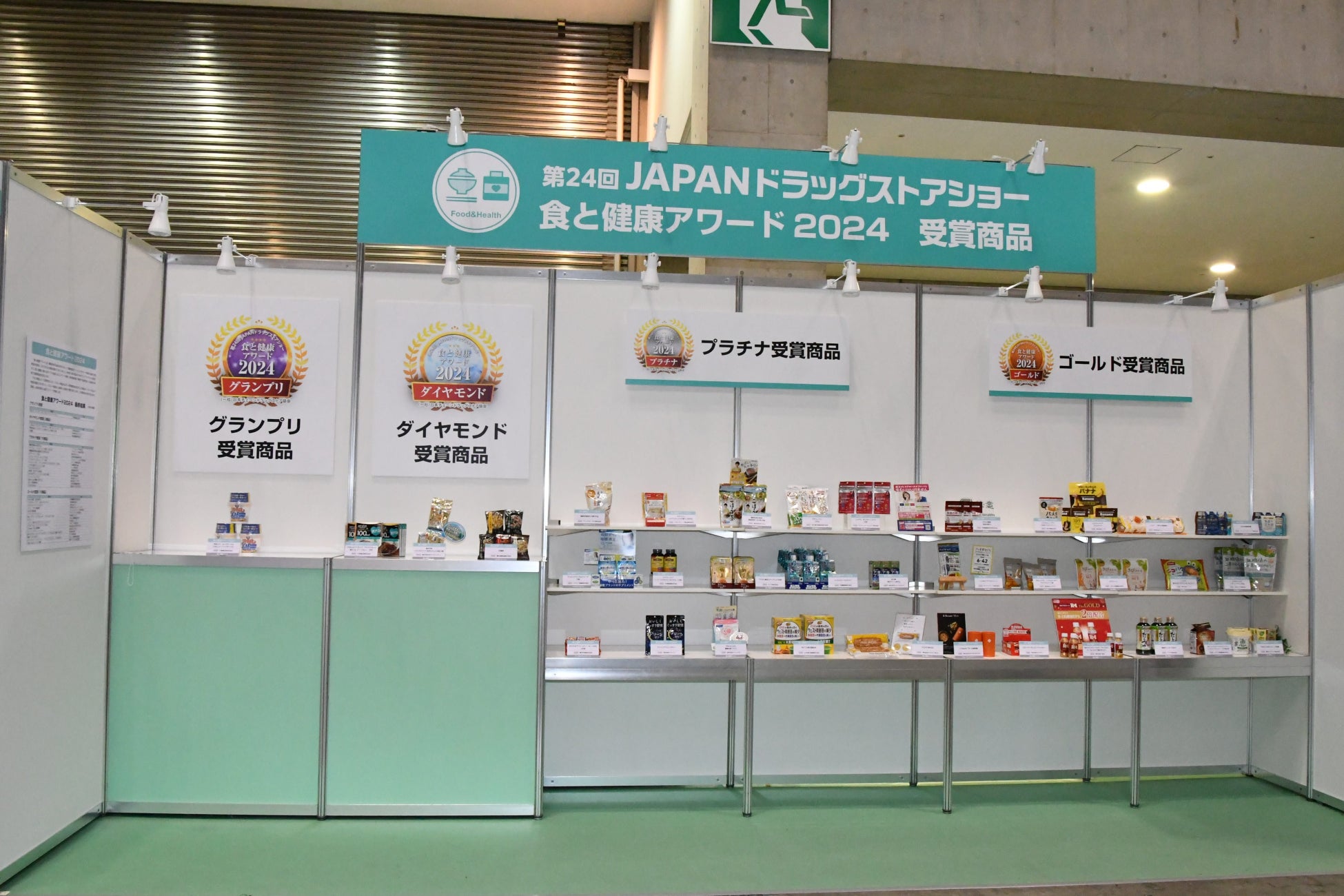 会場内では出展社による商品展示や試飲・試食が積極的に行われます。例年実施している「食と健康アワード2025」ではショー出展各社の持つ「食と健康に関わる全ての食品」の中から優れた商品を表彰します。7月2日に一次選考会が行われ、グランプリ・ダイヤモンド受賞候補に6商品が選ばれたほか、20商品がプラチナ賞、18商品がゴールド賞に選定されました。8月8日の二次選考会でグランプリ・ダイヤモンド各賞の受賞商品を決め、同日のレセプションパーティーで発表と表彰式が行われます。これら44商品はJAPANドラッグストアショー会期中に会場内(東7ホール)で展示されます。