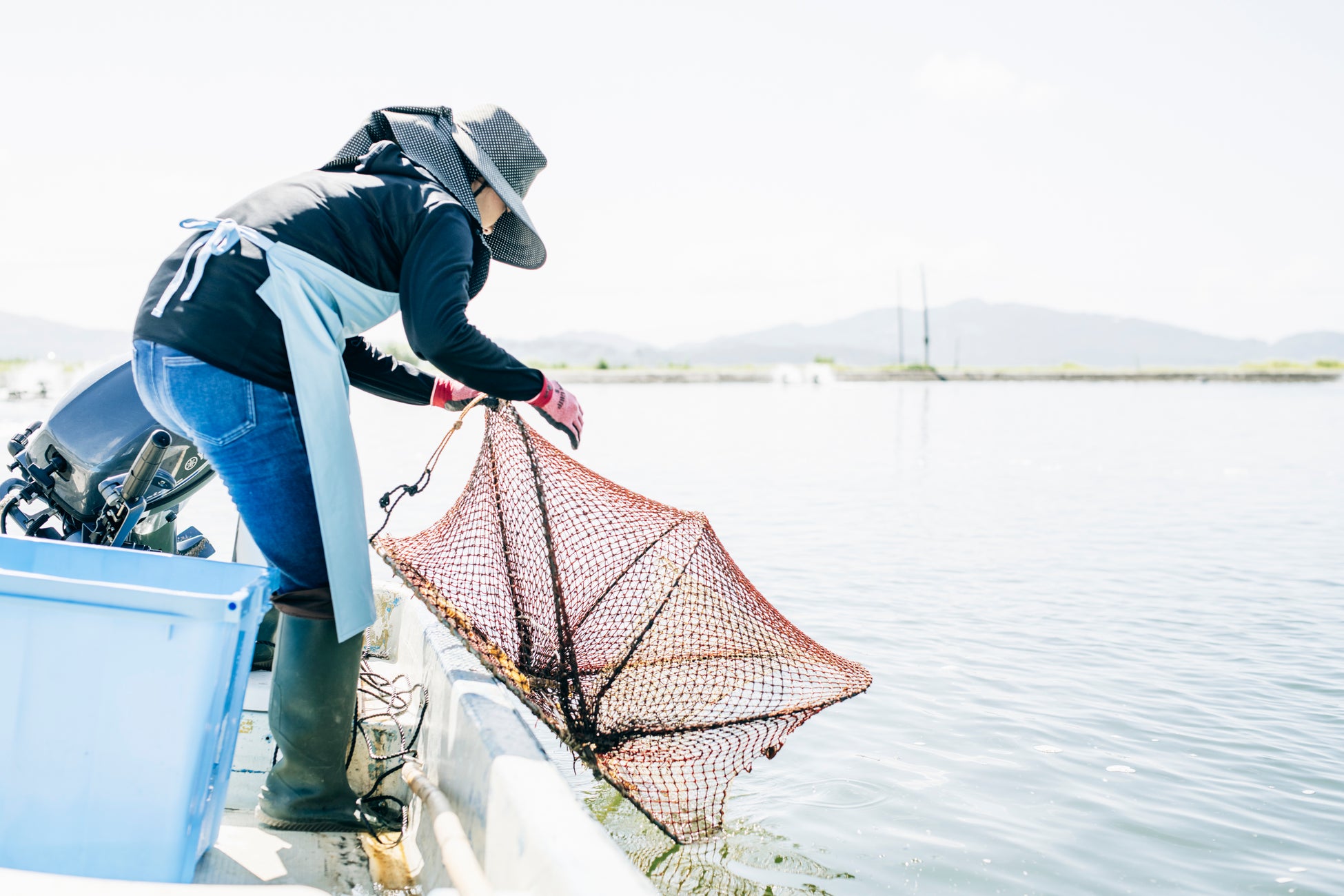 6月に稚エビを養殖池に放流し、12月に出荷を迎えるまでの間、養殖池の密度を最適に保ち、底質・水質環境に負荷をかけすぎないようにするために、車エビを間引くことがあります。