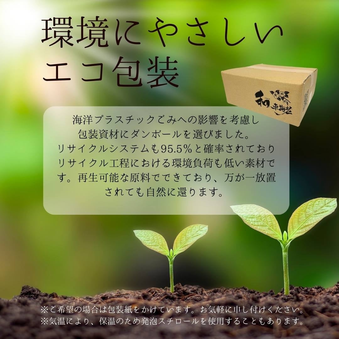 ※東北や沖縄などの一部の地域への発送は、外気の低温・高温を遮断するために、発泡スチロール等に入れてクール便等を使用する場合もあります。