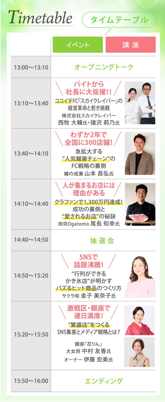 今年も、超有名チェーン店から今話題の飲食店まで、豪華な登壇者が7名が集結!