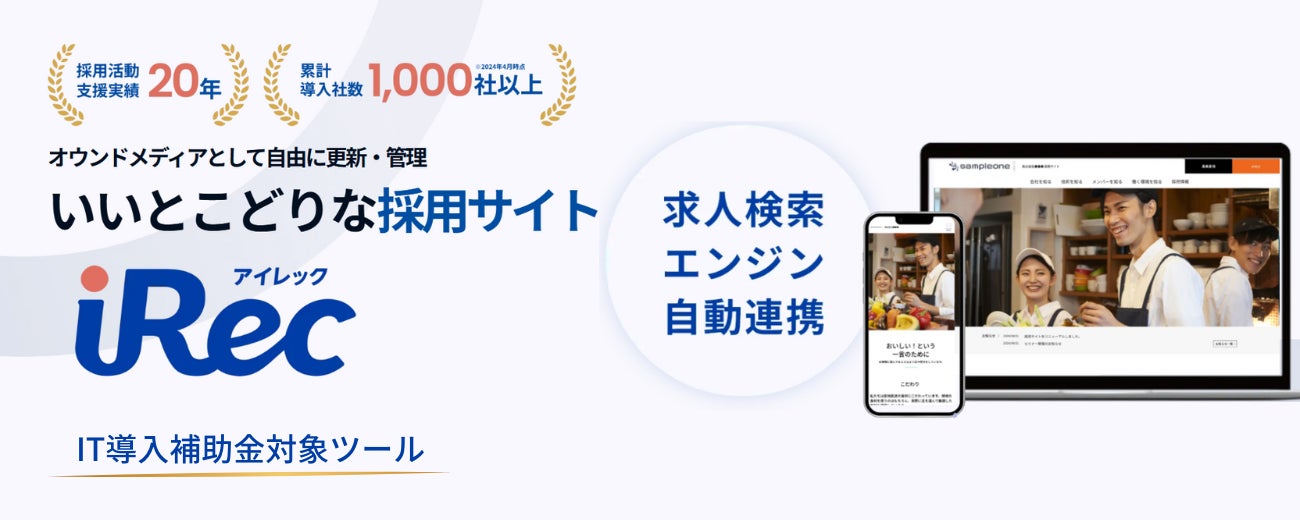 また、補助金対象ITツールとして「iRec」の導入と活用に関わるオプションサービスが認定を受けています。