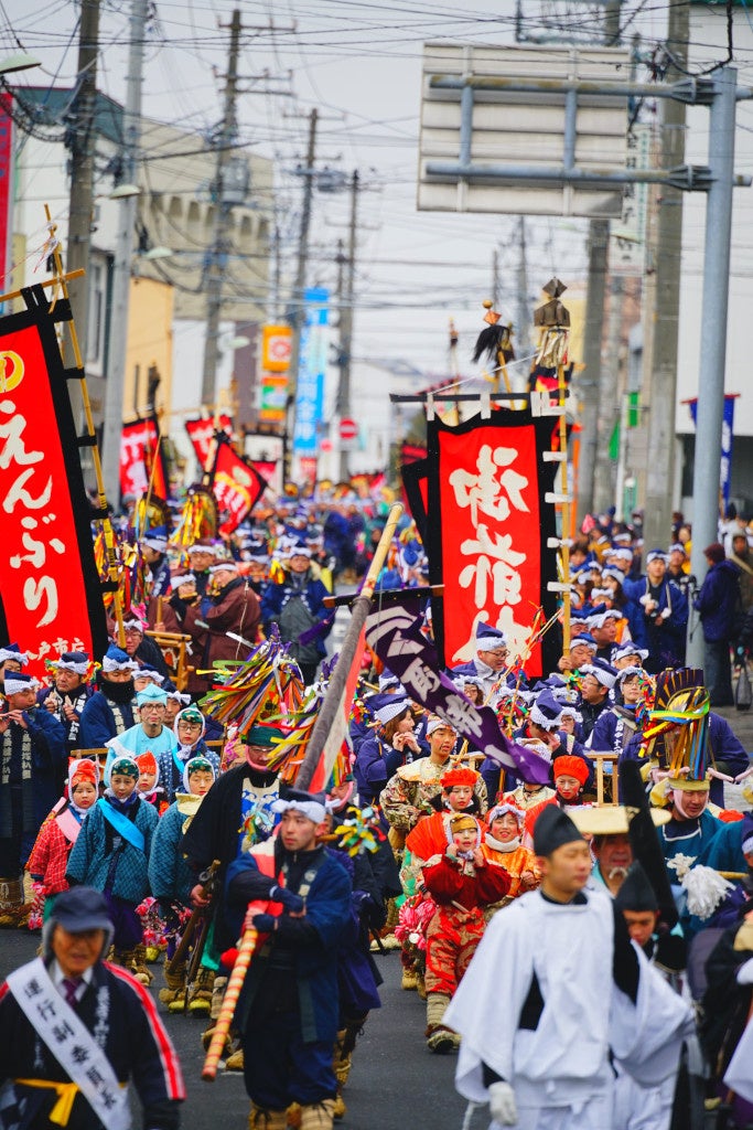 重厚感のあるお囃子に華やかな衣装と舞、冬真っ只中の八戸が祭りの熱を帯びる4日間。800年以上の歴史を持つとも言われる、八戸の冬の風物詩にご注目ください。