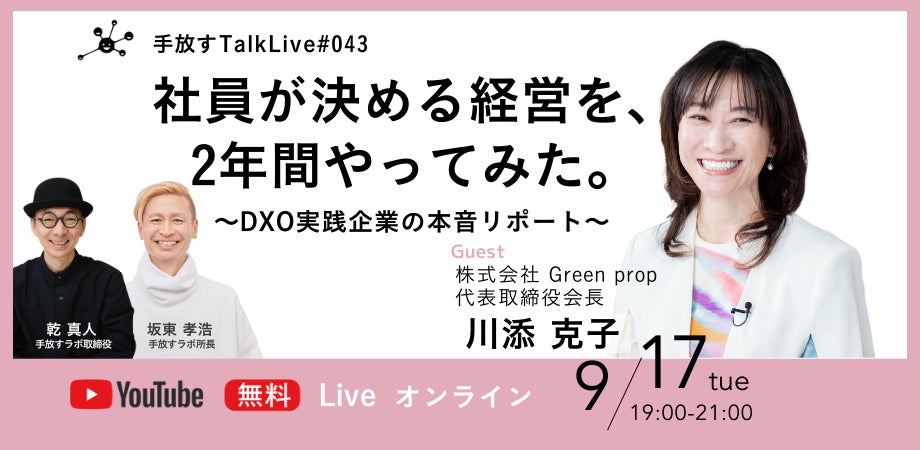 2024年9月17日 トークライブ『社員が決める経営を、2年間やってみた〜DXO実践企業の本音リポート〜』開催決定