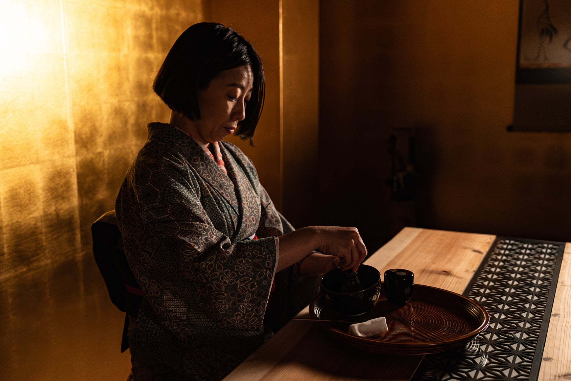 ショールーム内の茶室で体験できるお茶体験。抹茶の味をより引き立てるお茶菓子もご用意しております。専任のスタッフが抹茶を点てますので、ぜひその作法ひとつ一つにも注目し、抹茶の奥深い味わいをお楽しみください。