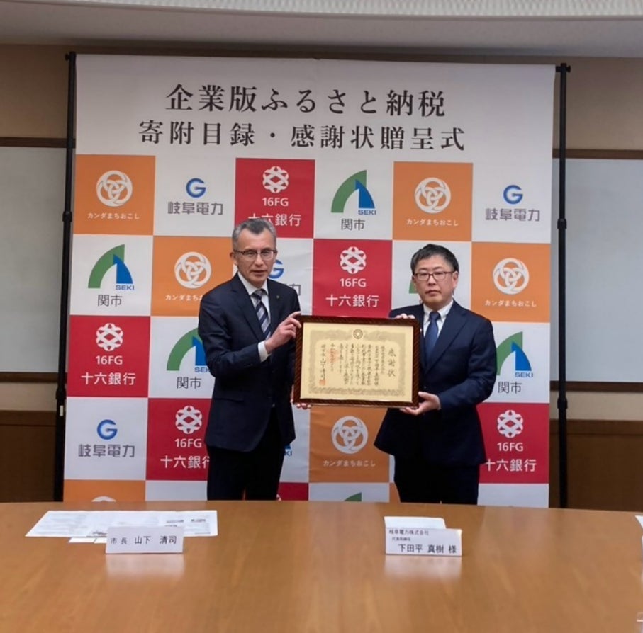 「関市」にて企業版ふるさと納税の寄附目録・感謝状贈呈式を開催