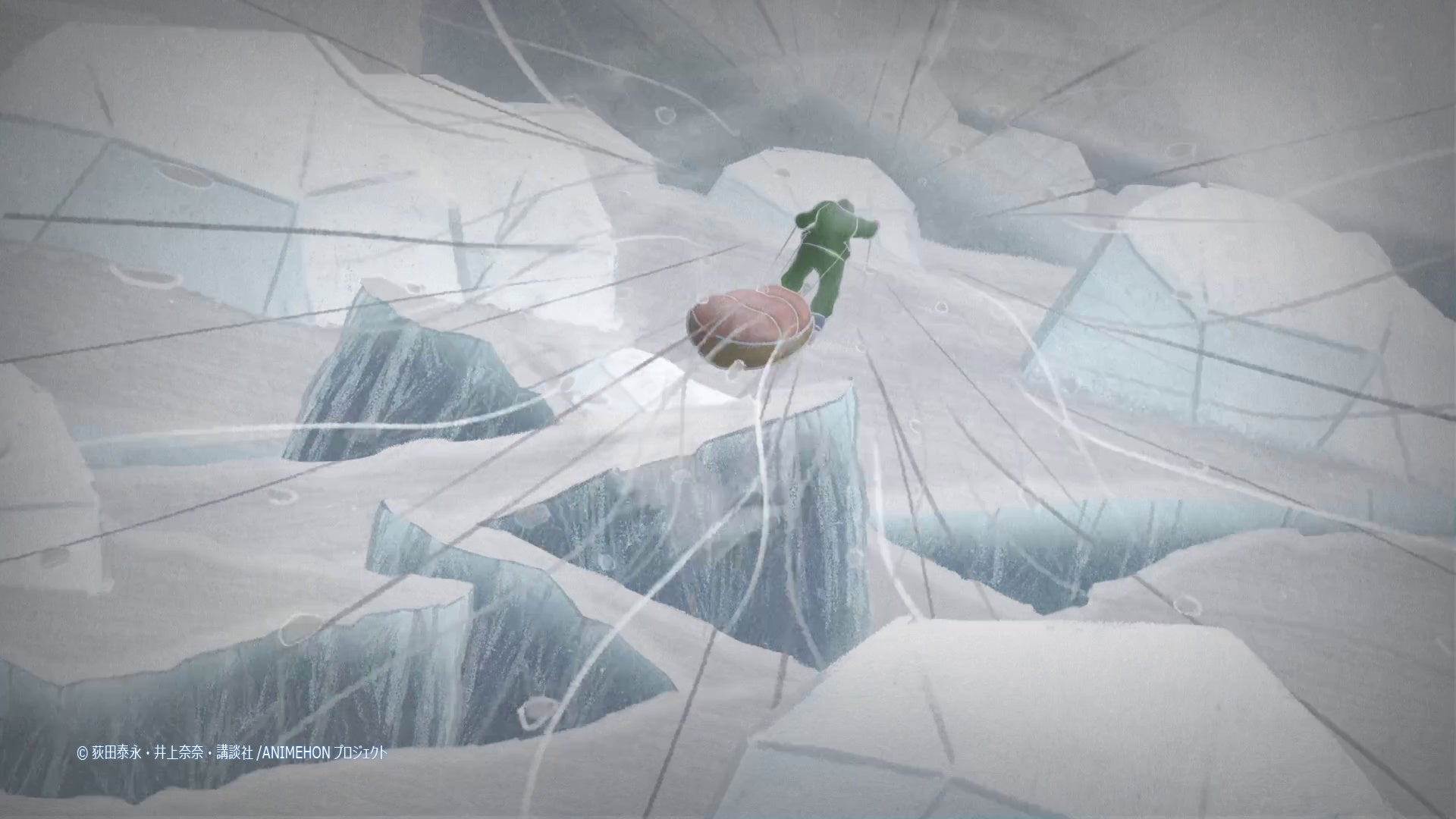 北極のどこまでも続く壮大な風景をアニメーションの力で膨らませて表現させていただきました。