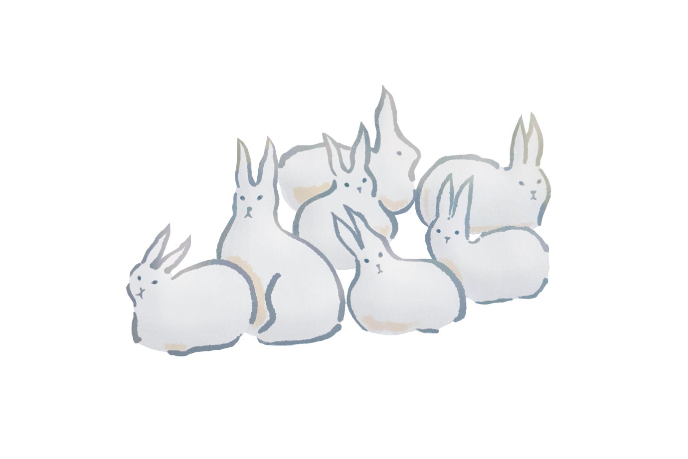 ウサギたちが身を寄せ合い、暖をとる姿。