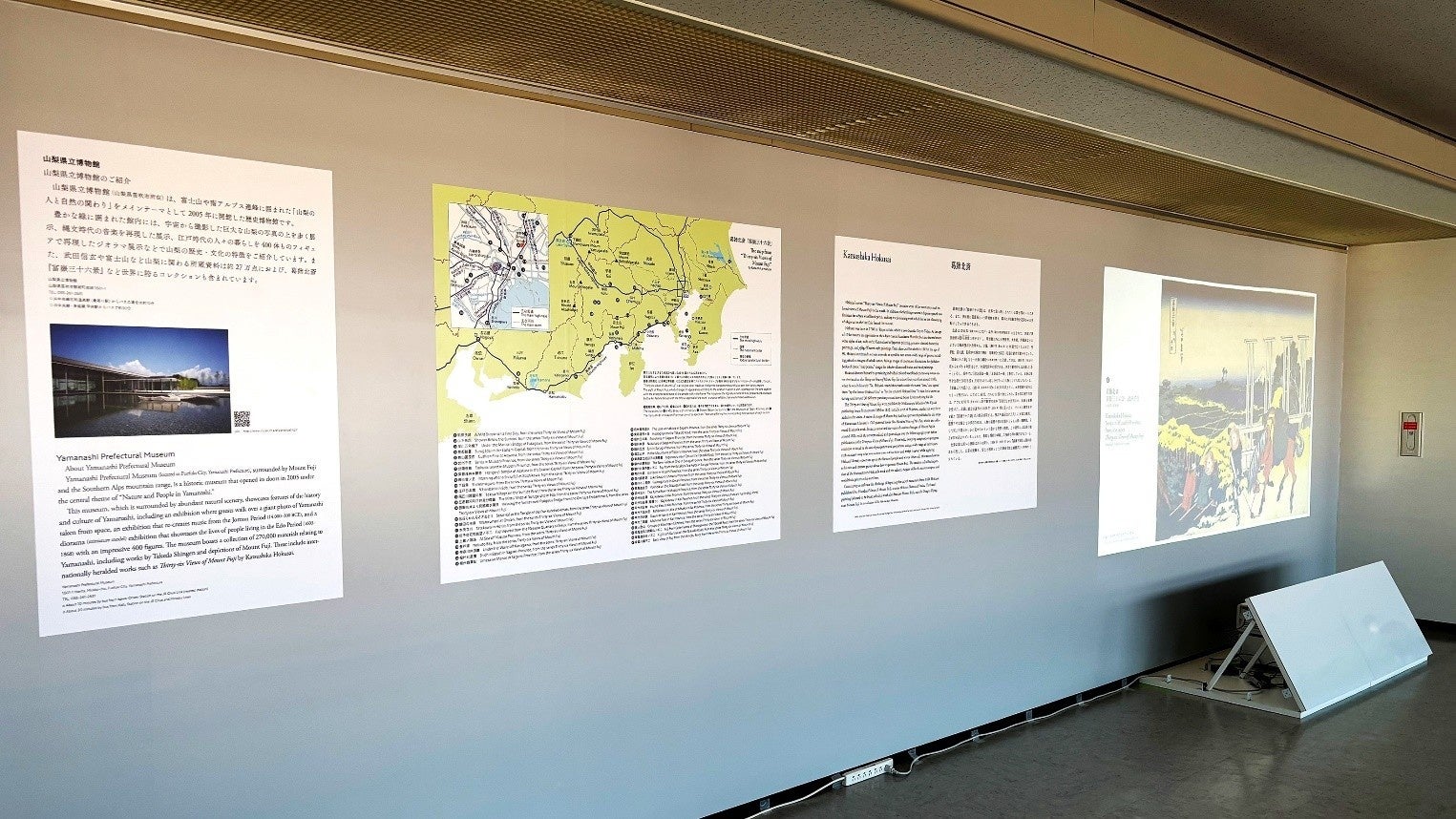 今回は入国手続き前エリアで「冨嶽三十六景」全作品の高精細デジタルデータをプロジェクターを用いて投影する展示を行うことにより、ご覧になった海外からのお客さまが日本滞在中に作品に描かれた地域や、原画所蔵元の山梨県立博物館を訪れてくださることを目指します。