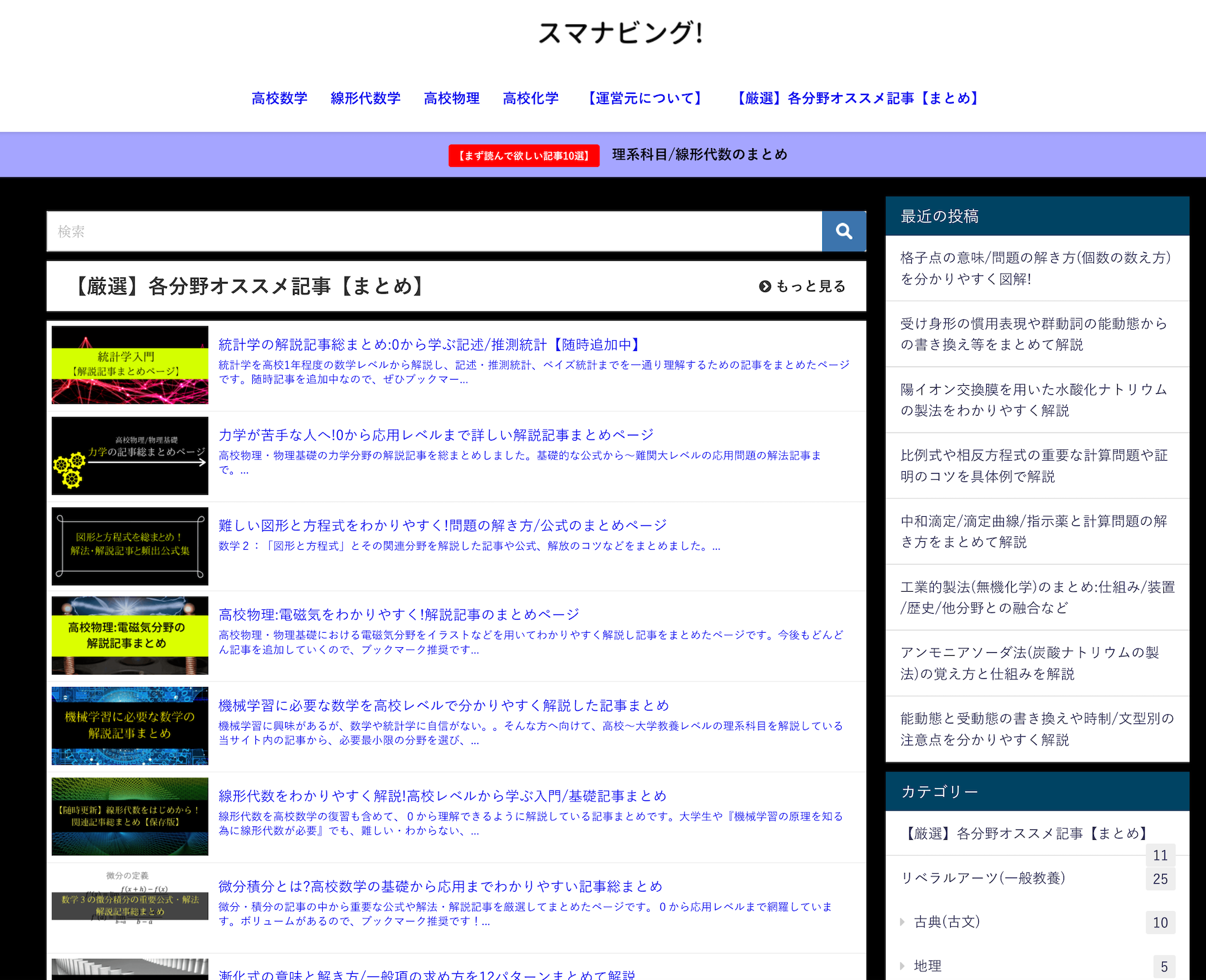 というのも、スマナビング!で解説している、特に高校数学が機械学習を始めとする情報分野において必須知識になっており、これらを詳しく学ばなかったり、卒業後時間が経過した方が学び直し・リスキリングとして手軽に復習できるコンテンツを求めておられ、その数が一気に増加したからです。