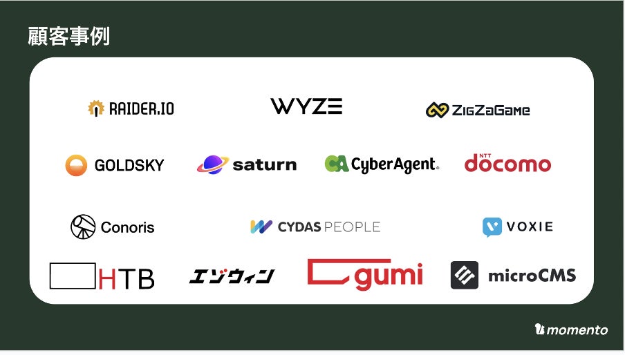 「Momento」は、スケーラブルでコスト効率化されたキャッシュで Web アプリケーションやサイトのパフォーマンスを加速化するサーバーレス完全自動化のキャッシュサービスをはじめとしたソリューションを提供しているデータプラットフォームです。企業はキャッシュサーバの設置やメンテナンス対応から解放され、高速かつスケーラブルにキャッシュサービス機能を手にすることができます。これにより、Eコマース、オンラインゲーム、IoT、メディア、エンターテイメントなどの場面で、高速レスポンスが求められるアプリケーションのレイテンシーを即座に削減し、本来のパフォーマンスを向上させます。
