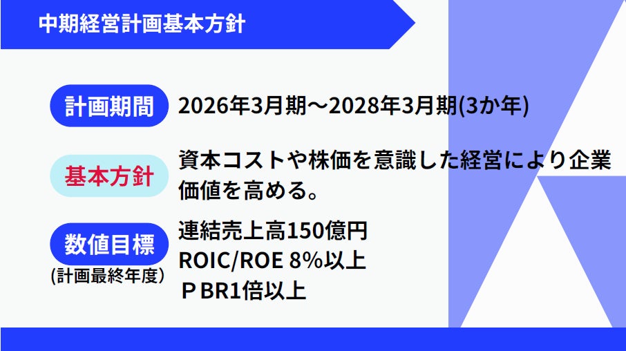 このような状況のもと当社グループは、従来の枠組みを超えた成長を目指す「限界突破」をテーマに、2026年3月期から2028年3月期を計画期間とする中期経営計画の基本方針を策定致しました。