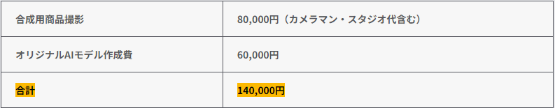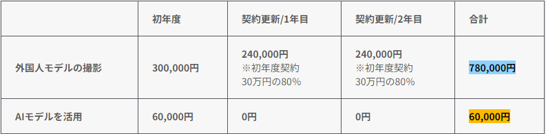 料金比較から、AIモデル活用による撮影費用削減効果は明白!