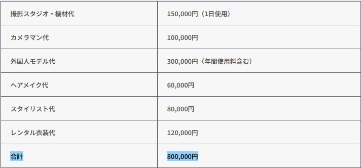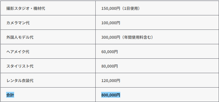 下記が、従来のアクセサリー・アイウェア業界におけるモデル撮影コストです。