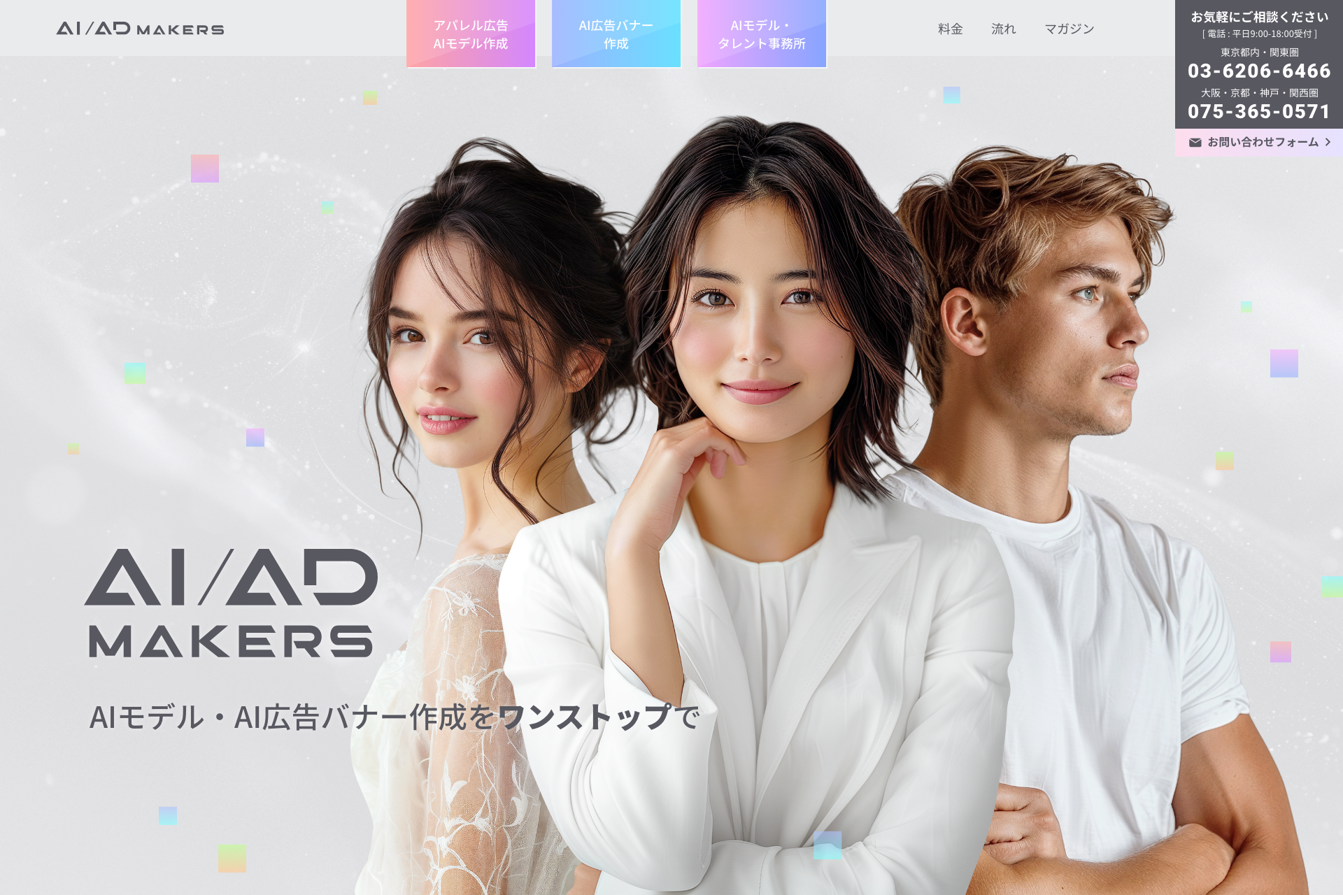 AI/AD MAKERSのURL(https://www.ai-admakers.jp/)から、受付電話番号・メールフォームも案内されており、この機会にぜひAIモデル・タレントの活用を相談して頂きたい。