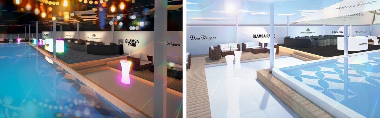水着ブランド“PINKY SHAKE”のPOPUPストアが出店。最新作のアイテムだけでなく、「GLAMSA PARK」のみでしか手に入らない限定商品も販売します。また、様々なsummerコーディネートを気軽に楽しんでいただけるよう、プールエリアでレンタルできる最新作の水着を1日10着限定で用意。そして、今回のコラボを記念し、プールエリアにおいて、オフィシャルナイトプールパーティーを開催。