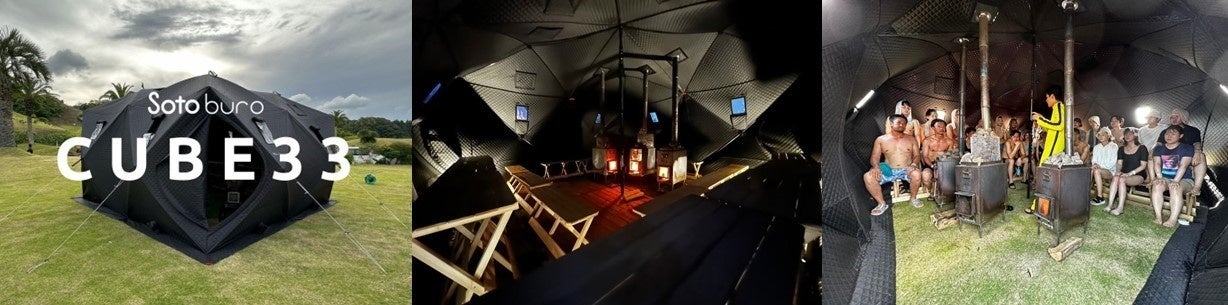 2023年に1日で1,200名を記録した過去最大のサウナイベント“SUMMER SAUNA RESORT”がサウナエリアを担当。最大33人収容できる超大型テントサウナ「Sotoburo CUBE33」を常設します。