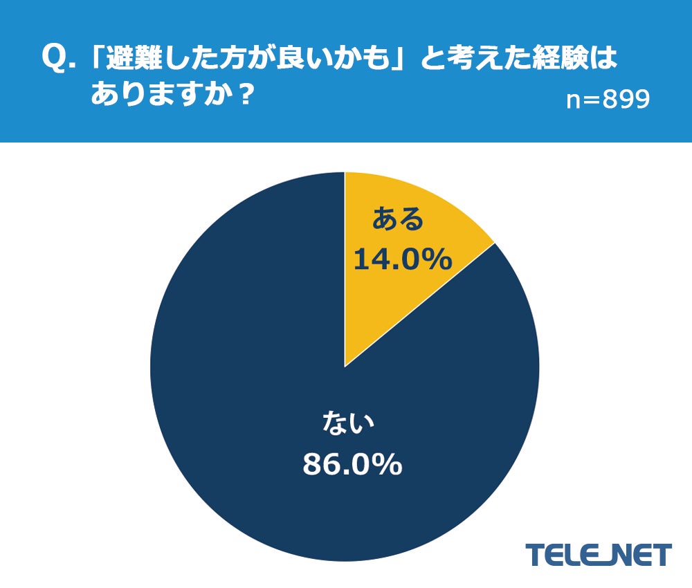 14%の方が「避難した方が良いかも」と考えたことは「ある」と回答しています。