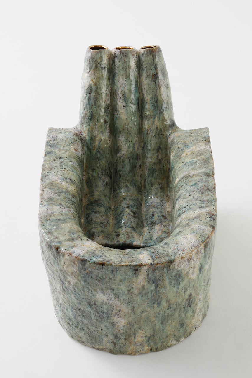 西條は陶を素材とした有機的な造形の作品を用いて鑑賞者が自他の身体へと意識を傾ける瞬間を作りだそうとしています。陶磁器の内部が空洞であることに身体との共通点を見出した西條は、近年、内臓を含む身体を想起させる作品を制作し、その内部に息や声を吹き込むパフォーマン スによって、各々の身体の拡張を試みてきました。本展では、陶の作品のほか、制作において息を吹き込む過程のあるガラス作品も発表し、作品と身体との境界をさらに考察します。また、手で直接粘土に触れ、その動きに応じて形を成し表面に手跡が残る陶芸を、西條は自身の身体を実感する行為であり、世界とのコミュニケーションの実践と考えています。作品を介したパフォーマンスでは運搬という行為を新しく取り入れ、作品と身体、身体相互、さらに身体とそれを取り巻く環境はどのようなコミュニケーションを取り得るのかを探ります。