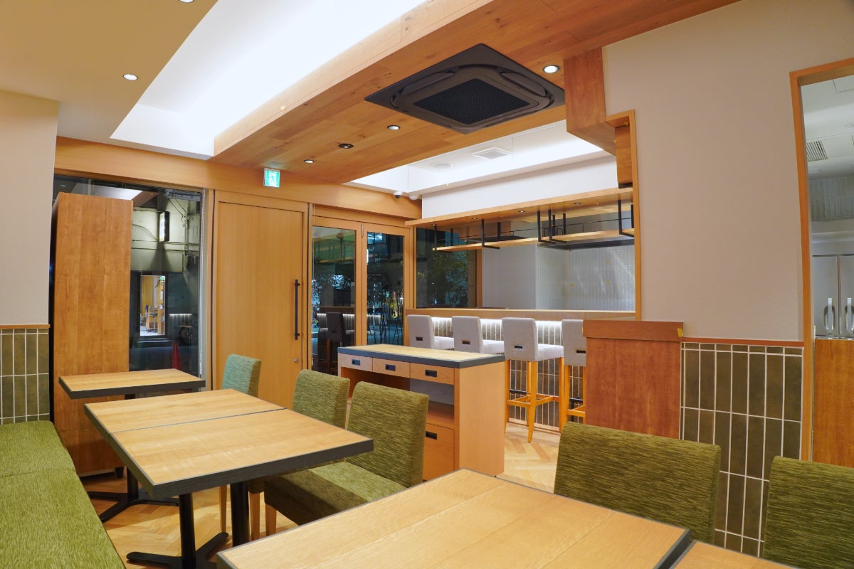 店内は、調理風景やドリンク作りが目の前で見えるコの字型カウンターを主体とし、「作った人の顔が見える安心感」を提供します。路面店ならではのガラス張りの外観と、喋りやすいスタッフが揃っているため、ふらっと立ち寄れる親しみやすさと、固くならず気軽に入れる雰囲気を両立しています。