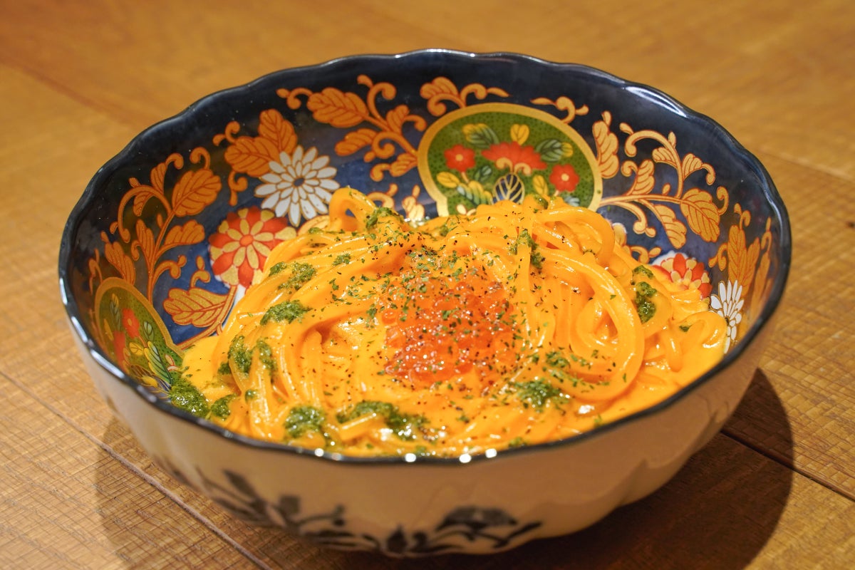 お客様を飽きさせない商品戦略として、定番の小皿料理を常時20種類程度提供するほか、季節の旬の食材を取り入れた創作小皿を入れ替えます。特に、和の技術を取り入れた「牛タンてっさ」(800円)、備前黒牛の旨味を凝縮したひき肉をふんだんに使用したメンチカツとコロッケのハイブリッド「備前黒牛のコロッチ」(550円)、そして濃厚な「いくらと雲丹クリームの生パスタ」(2,000円)など、和と洋の垣根を超えたメニュー構成で料理を提供いたします。