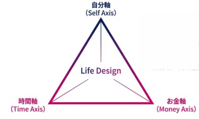 人生設計とは、「こんな人生にしたい」という想いを起点に、下記3つの視点で将来を見通し、自分にとって納得できる選択の基準をもとに将来をデザインしていくことです。