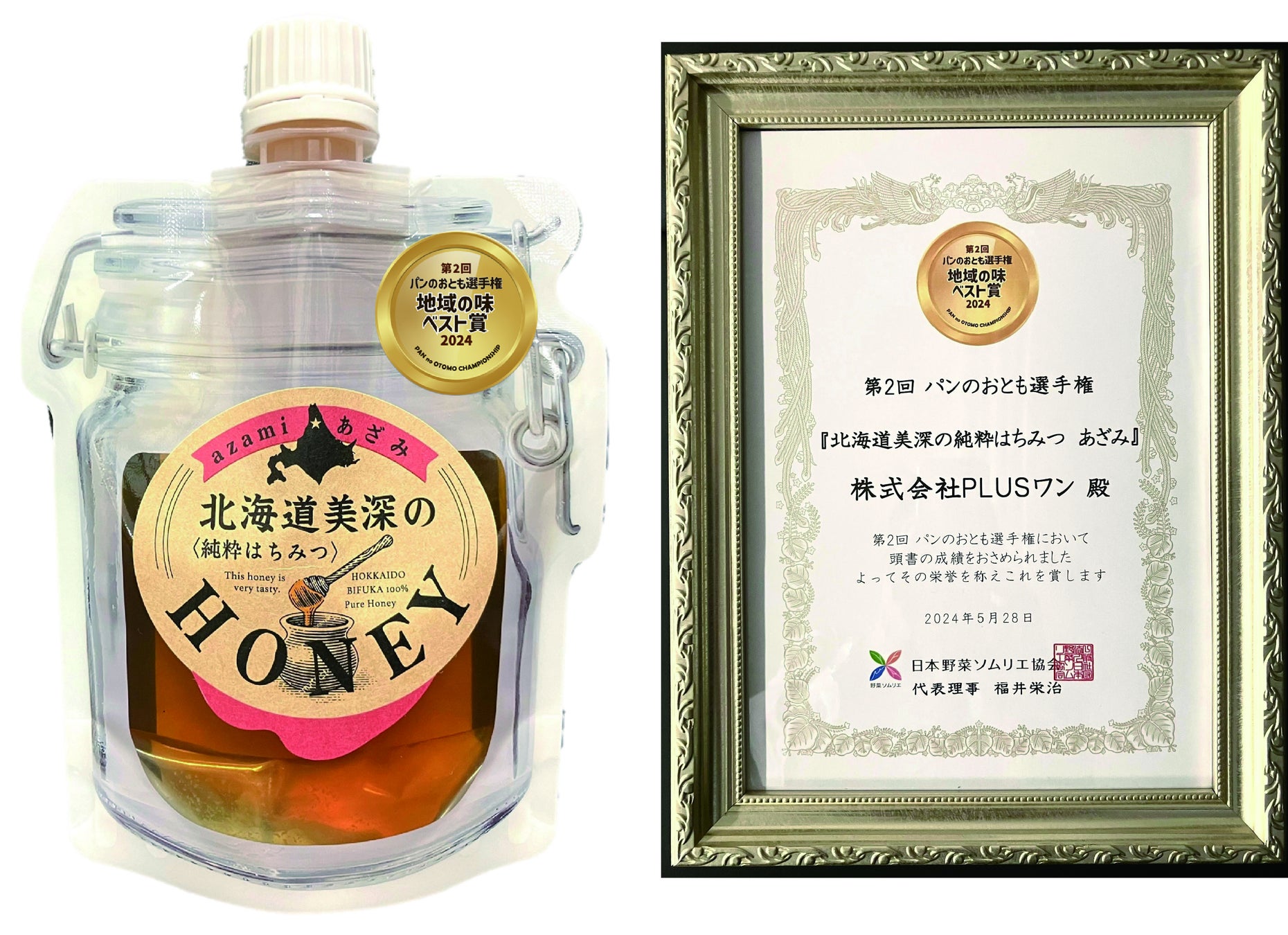株式会社PLUSワン(本社:札幌市豊平区、代表:範國 完次)は、「北海道美深の純粋はちみつ あざみ」が「第2回パンのおとも選手権」において、地域の味ベスト賞を受賞したことをお知らせいたします。一般社団法人日本野菜ソムリエ協会が主催する「パンのおとも選手権」は、『パンのおとも』日本一を決めるコンテストであり、弊社の製品では初の受賞となります。