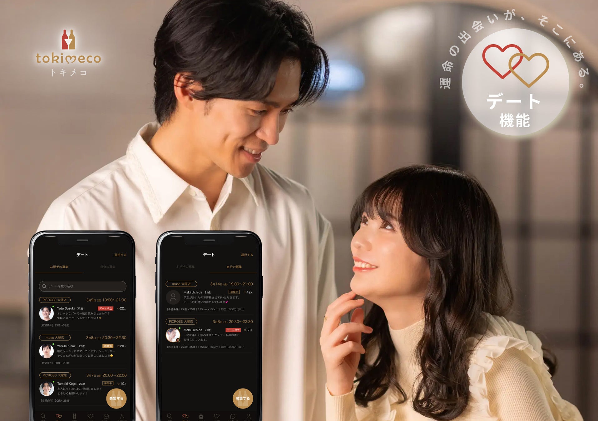 「まずはデートから始めてみませんか?」マッチングアプリtokimeco で新機能「デート機能」をリリース!