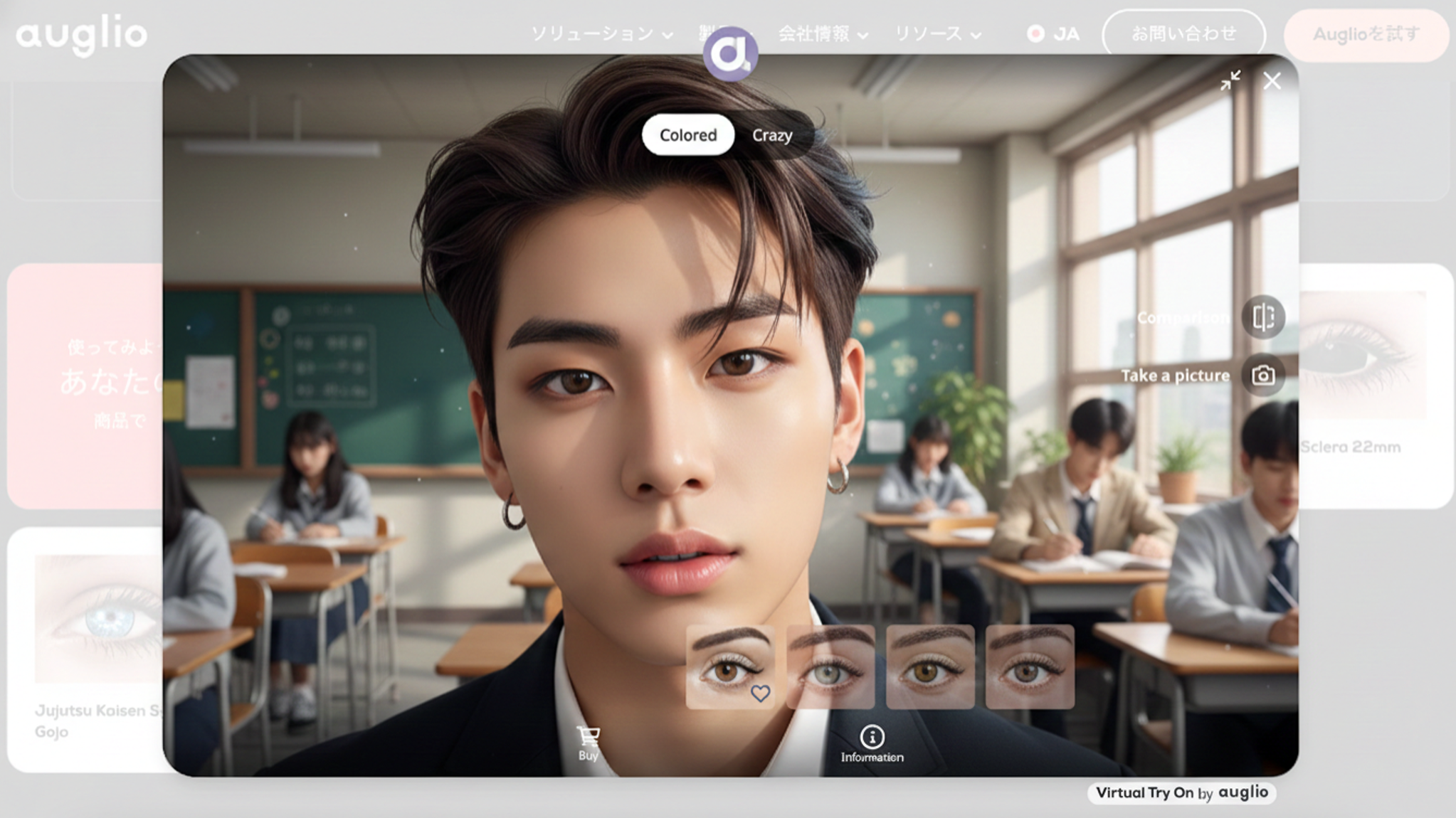 Auglioは、AR(拡張現実)技術と顔分析 (顔型、顔色、髪色) を通じて、